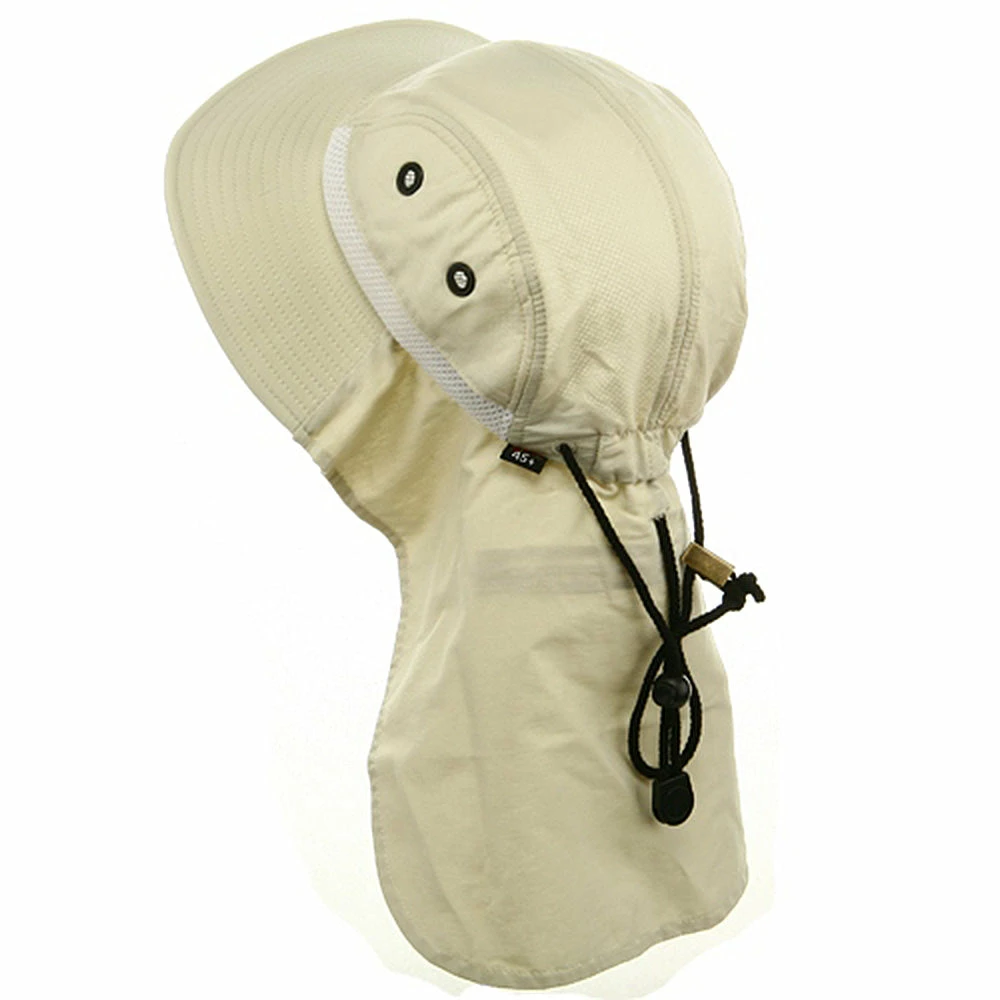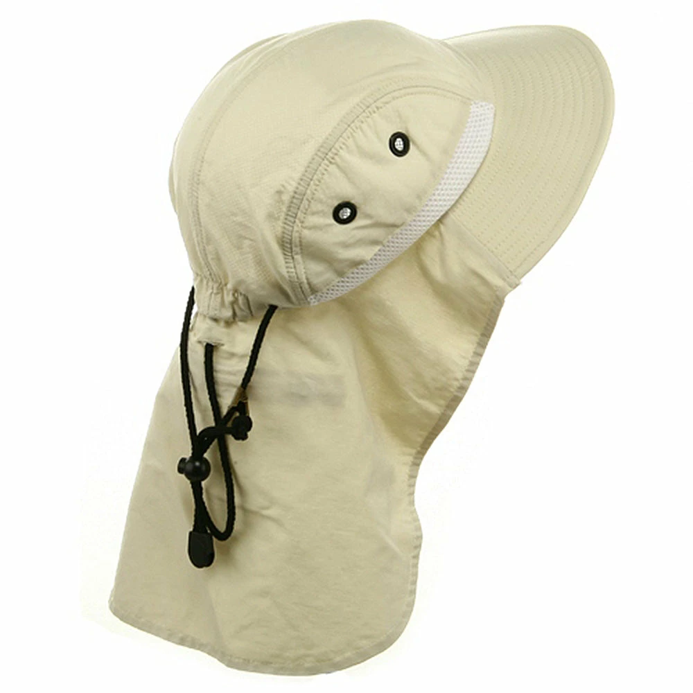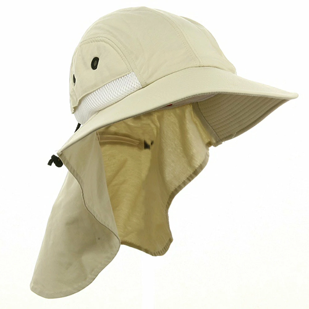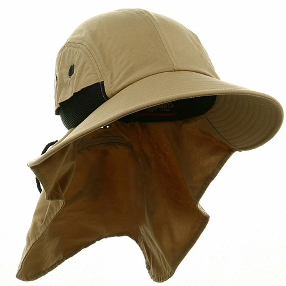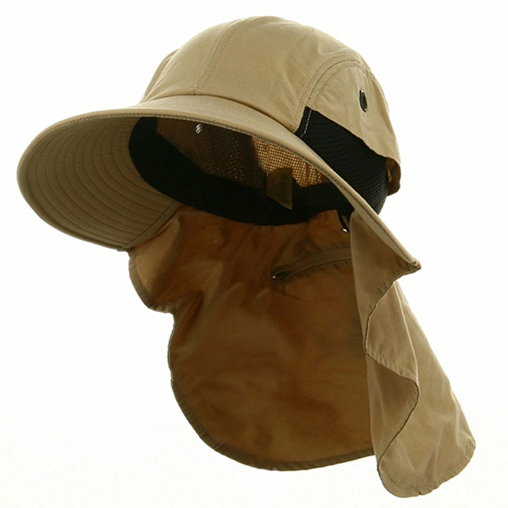 Men and women alike, be ready for your next great safari with our irreplaceable UV 45+Extreme Condition Flap Hat. Made from unique blend of UV protective cotton and nylon, thiscolored hat is “the” hat to take with you on your next big adventure. This extreme outdoor hat features a 3 1/2″ wide foam brim with an 8 1/2″ long veil with adjustable back string, to provide you with just the right fit to allow maximum protection from whatever elements you may encounter. In addition to the four paneled mesh lined crown keeping your head cool, this hat also features metal lined ventilation holes on each side, an inner terry sweatband and Zipper Ice pack pocket, all constructed and designed to provide you with maximum circulation and refreshing coolness at all times.Also fitted with an elastic band and metal buckle to allow you to choose the perfect size for your head and provide you with a snug “stay -on” fit, for those days when your safari may require you to run Don’t leave home without this hat, you have been warned!