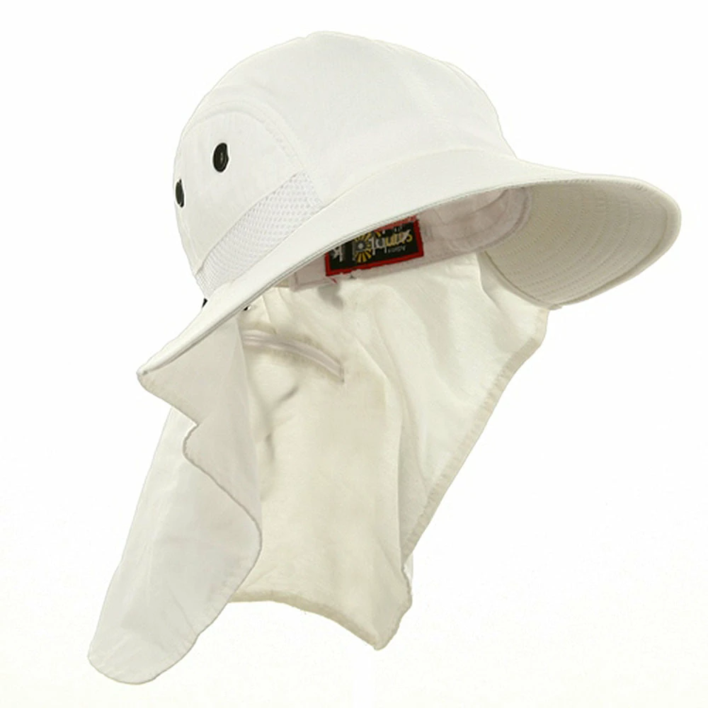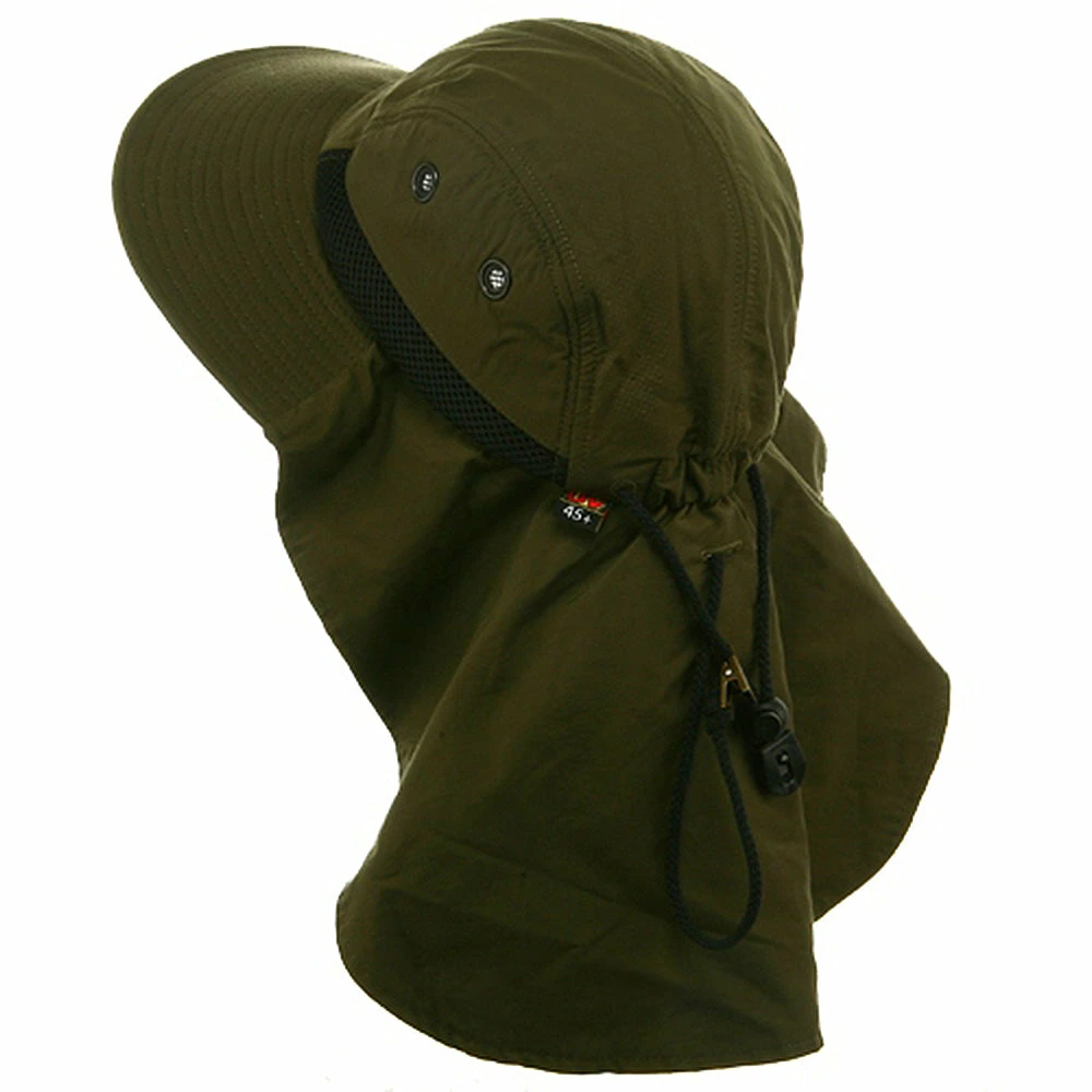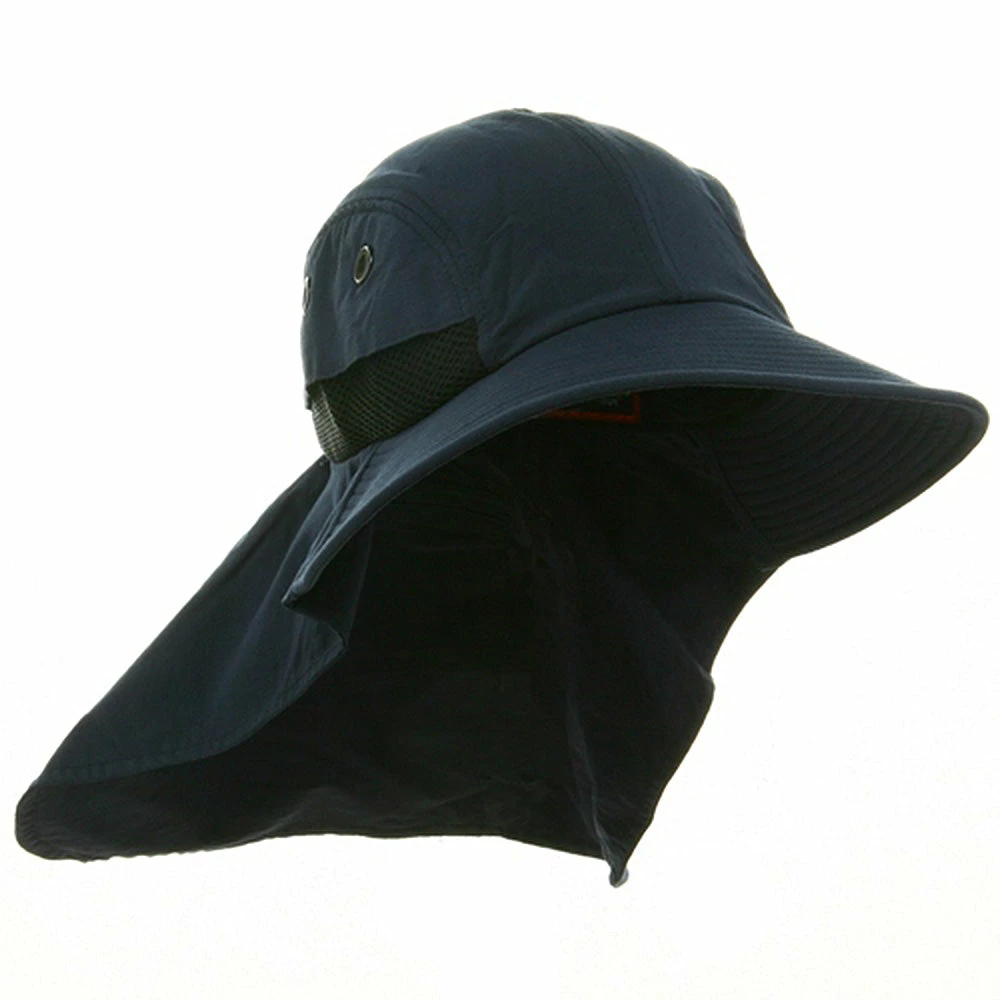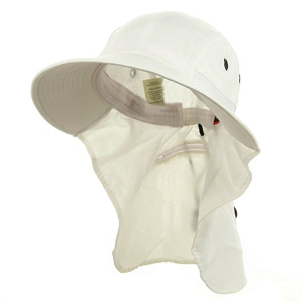 Men and women alike, be ready for your next great safari with our irreplaceable UV 45+Extreme Condition Flap Hat. Made from unique blend of UV protective cotton and nylon, thiscolored hat is “the” hat to take with you on your next big adventure. This extreme outdoor hat features a 3 1/2″ wide foam brim with an 8 1/2″ long veil with adjustable back string, to provide you with just the right fit to allow maximum protection from whatever elements you may encounter. In addition to the four paneled mesh lined crown keeping your head cool, this hat also features metal lined ventilation holes on each side, an inner terry sweatband and Zipper Ice pack pocket, all constructed and designed to provide you with maximum circulation and refreshing coolness at all times.Also fitted with an elastic band and metal buckle to allow you to choose the perfect size for your head and provide you with a snug “stay -on” fit, for those days when your safari may require you to run Don’t leave home without this hat, you have been warned!