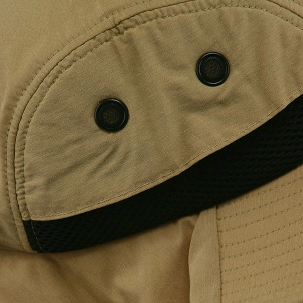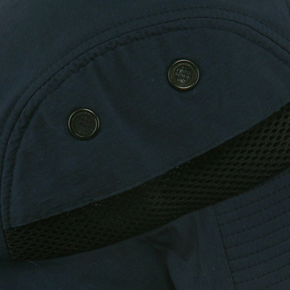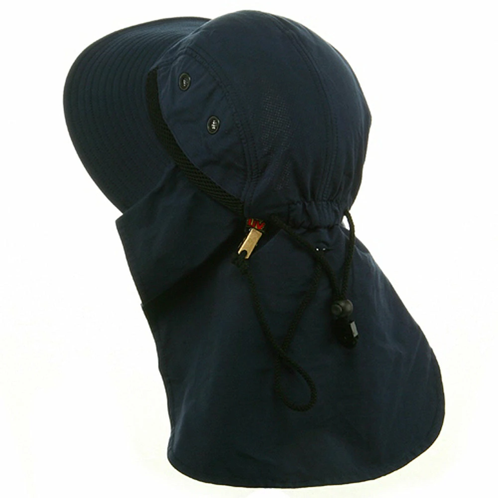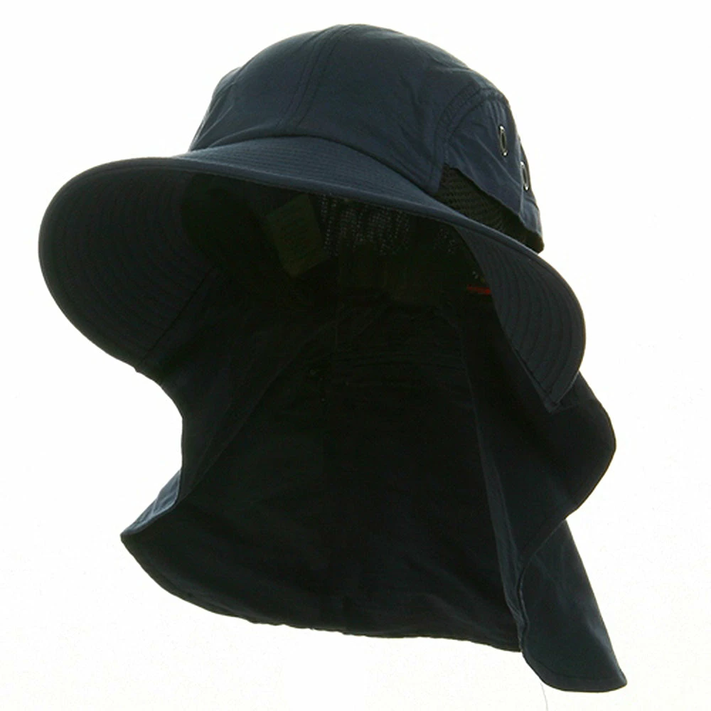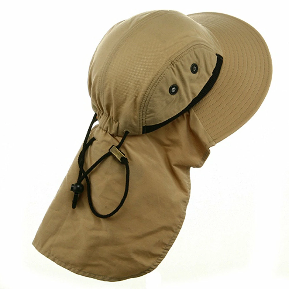 Men and women alike, be ready for your next great safari with our irreplaceable UV 45+Extreme Condition Flap Hat. Made from unique blend of UV protective cotton and nylon, thiscolored hat is “the” hat to take with you on your next big adventure. This extreme outdoor hat features a 3 1/2″ wide foam brim with an 8 1/2″ long veil with adjustable back string, to provide you with just the right fit to allow maximum protection from whatever elements you may encounter. In addition to the four paneled mesh lined crown keeping your head cool, this hat also features metal lined ventilation holes on each side, an inner terry sweatband and Zipper Ice pack pocket, all constructed and designed to provide you with maximum circulation and refreshing coolness at all times.Also fitted with an elastic band and metal buckle to allow you to choose the perfect size for your head and provide you with a snug “stay -on” fit, for those days when your safari may require you to run Don’t leave home without this hat, you have been warned!