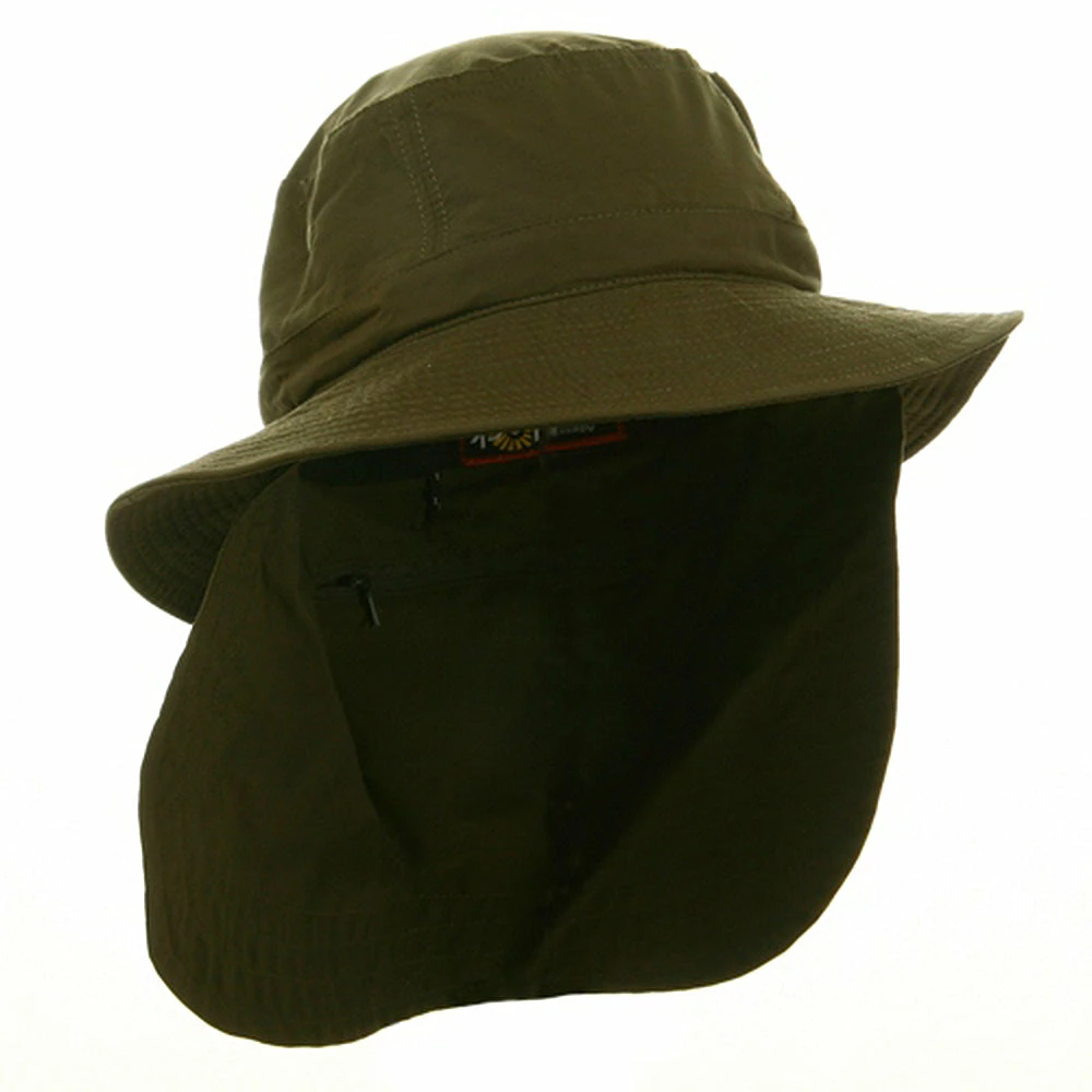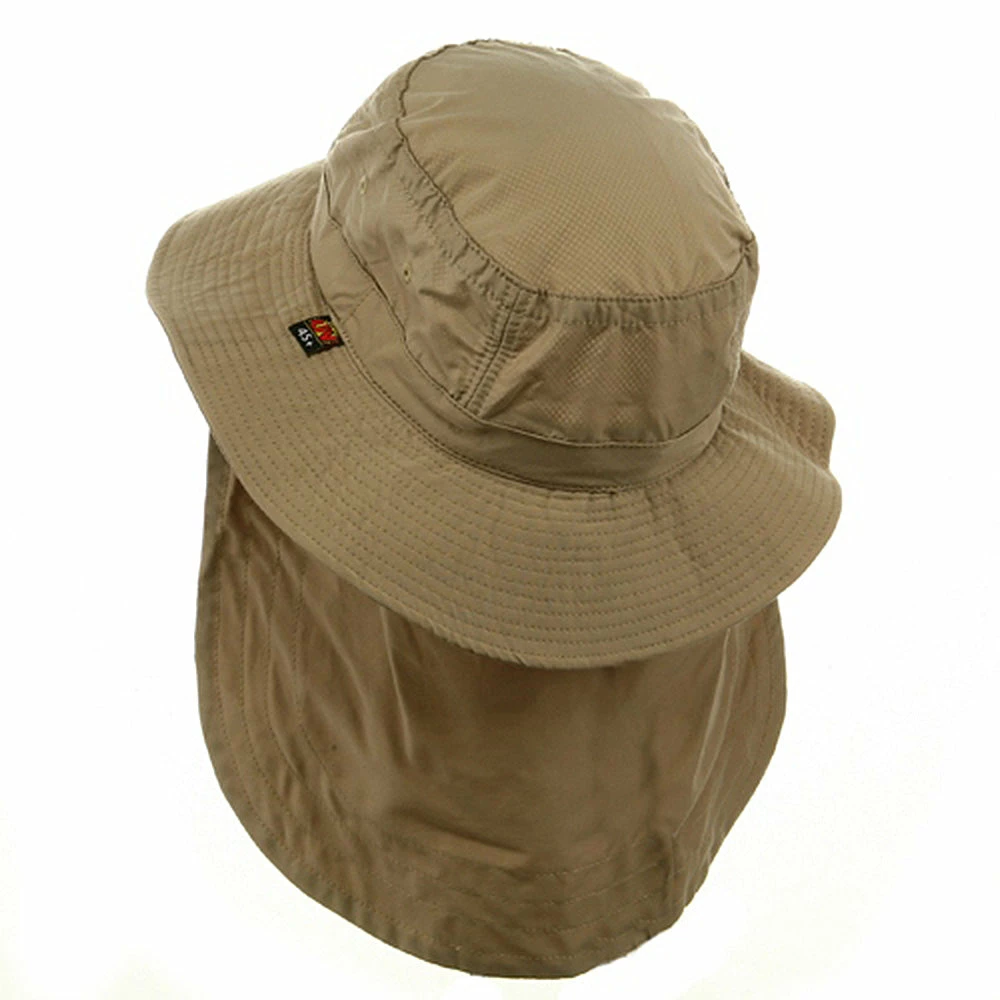 Men and women alike, be ready for your next great quest or get away with our UV 45+Extreme Vacationer Flap Hat. Made from unique blend of UV protective cotton and nylon, this khaki colored hat is “the” hat to take with you on your next big adventure. This extreme outdoor hat features a 3″ wide brim with a 9″ long and 15″ wide veil in the back, to provide you maximum protection from whatever elements you may encounter. In addition to the four paneled crown keeping your head cool, this hat also features an inner terry sweatband and Zipper Ice pack pocket, all constructed and designed to provide you with maximum circulation and refreshing coolness at all times.Also fitted with an easy clip which allows you to simply attach the hat to your collar for convenience, so you never have to worry about losing this hat no matter what activity you may be doing. Not as extreme as some of our other hats, but perfect for the mild vacation.