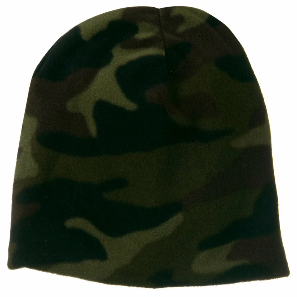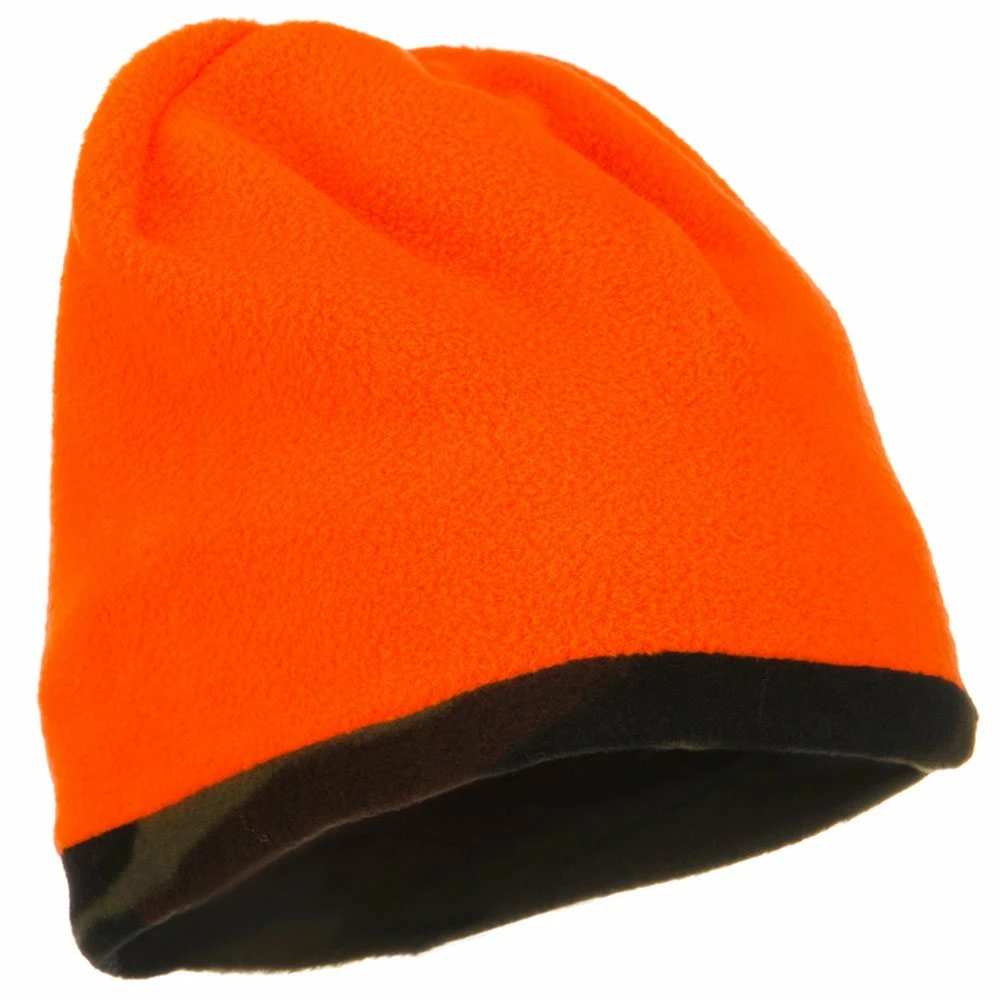 Our Camo Fleece Reversible Camo Beanie that is made in the great United States. It not only keeps your head well insulated in the cold weather, but it is also reversible for two completely different looks. One side of beanie features camo fleece in green, brown and black whereas other side is a solid in blaze orange color. The blaze orange is intensely bright. With a flexible and stretchable fabric, this beanie is sure to fit on most with a comfortable fit. Wear it blend in, and flip it to stand out. Easy as cake, all on one!