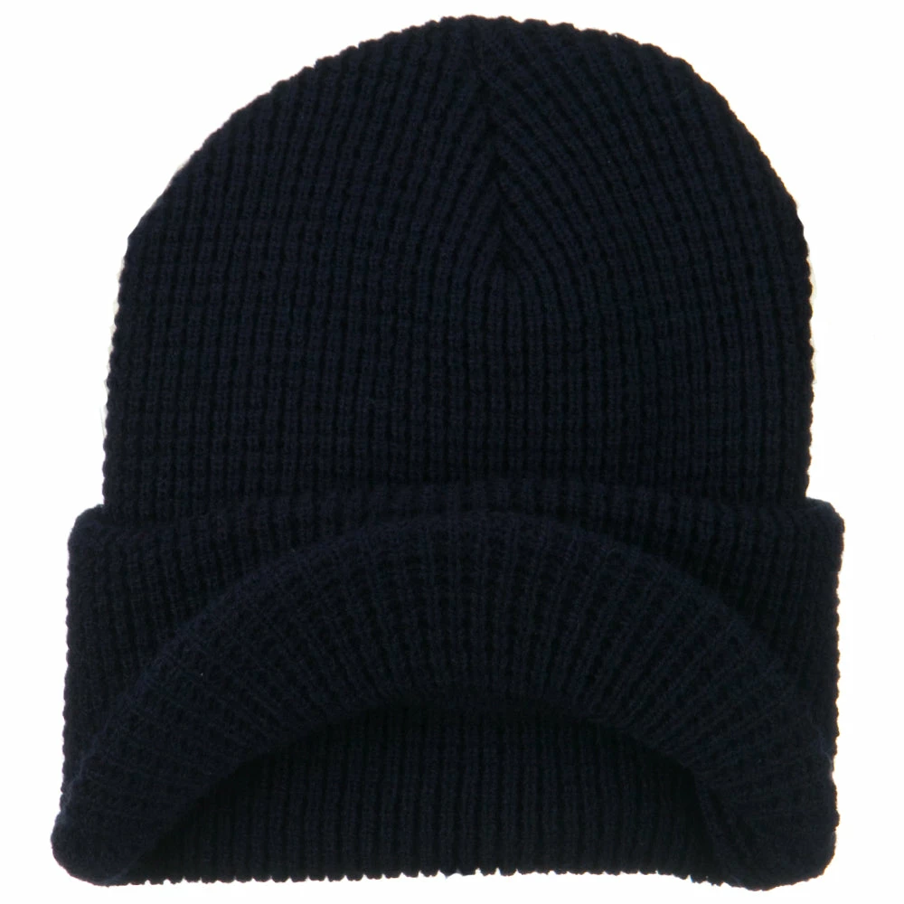 Softly dual layered for warmth, with a cuff and visor, this Waffle Stitch Cadet Military Beanie Visor will offer you great winter look with simple in design. Crown of beanie is constructed out of 1 panel of stretchable fabric, and hat ensures comfortable fit for most head types. Generous in size and flexible enough to fit any head shape, the hat can be worn down over the ears for more coverage, or up above the ears for less coverage. This beanie visor that is also available in other dark colors is great for any winter outings.