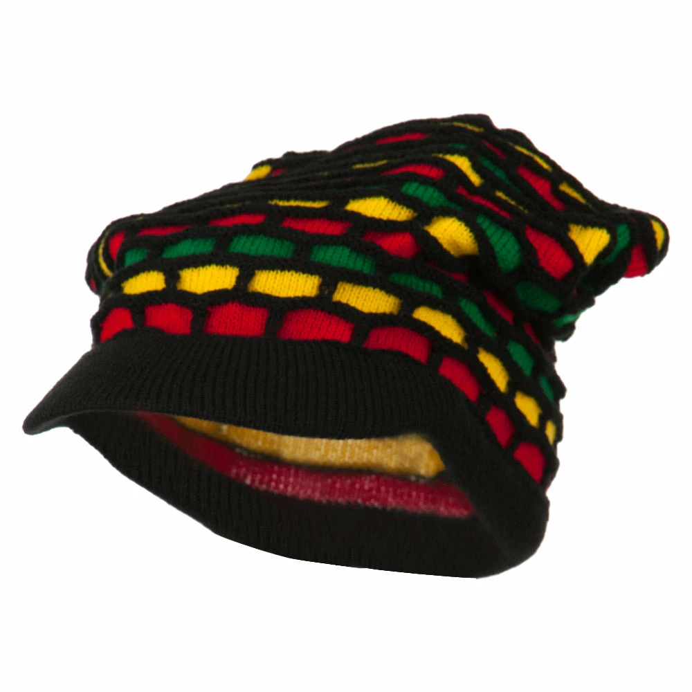 Multi color honeycomb deep crown visored beanie hat for everyone.
