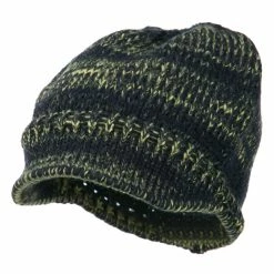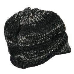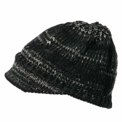 Mixed knit beanie visored hat for women.