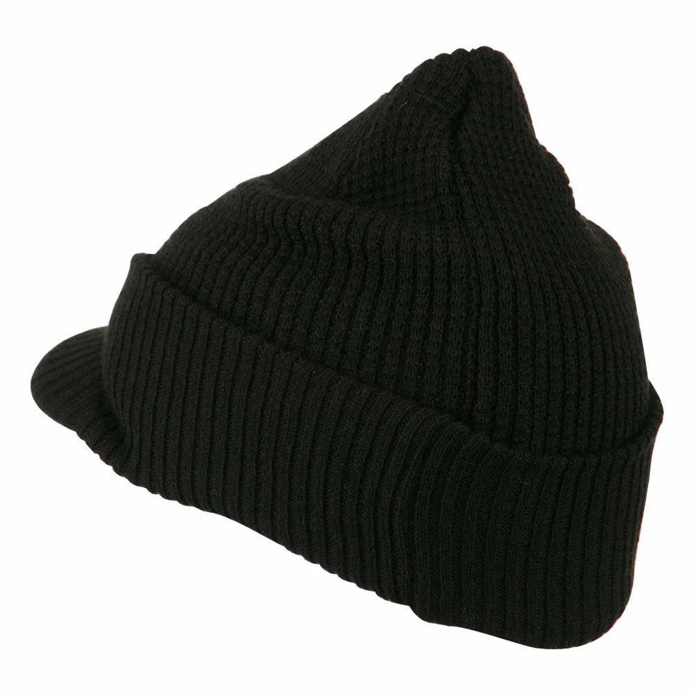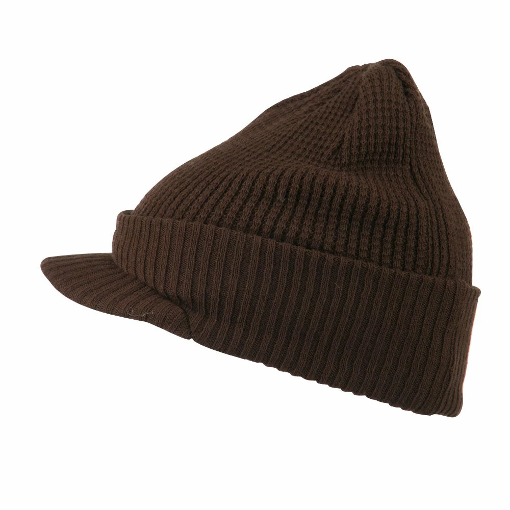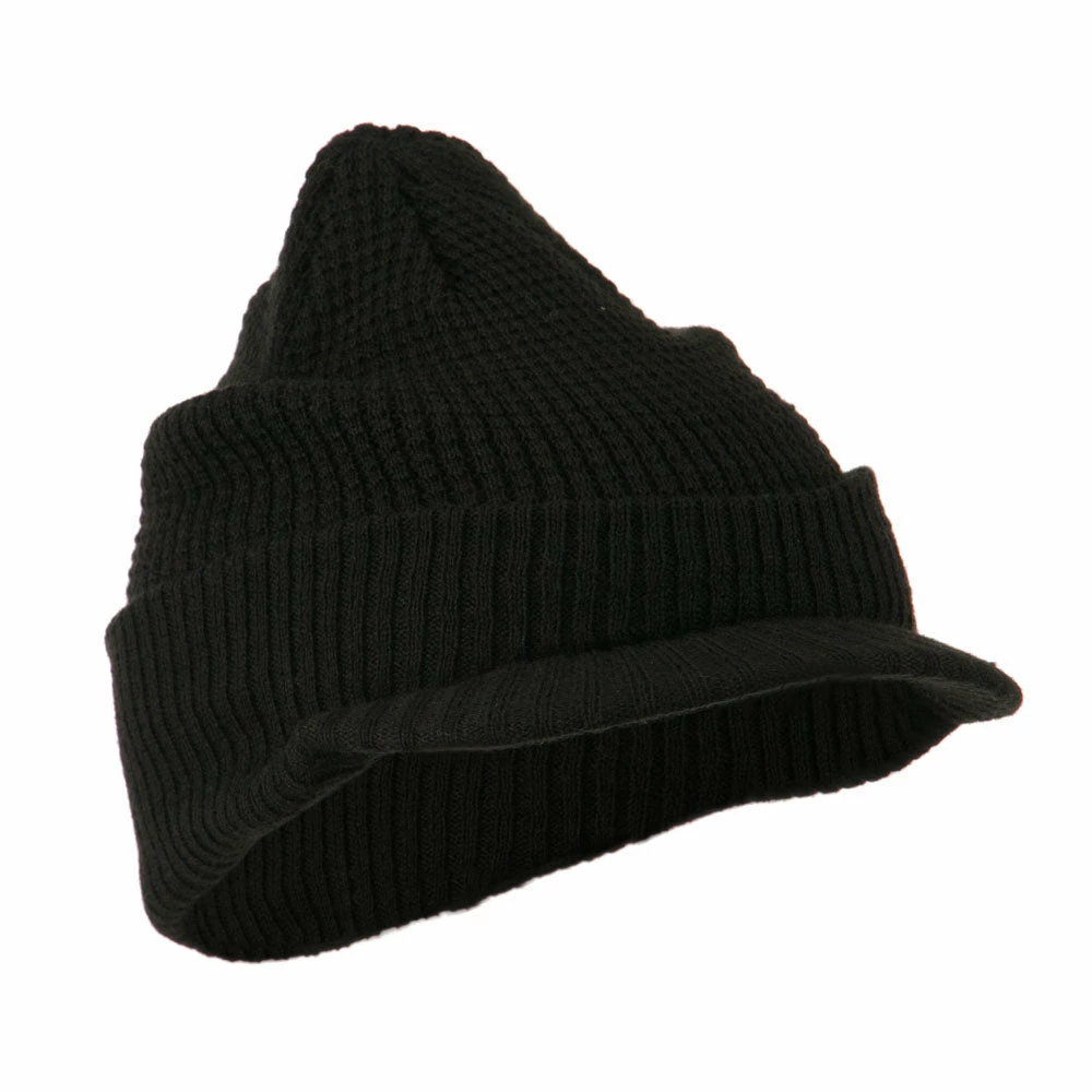 Solid in color, cuff visored beanie hat for everyone.