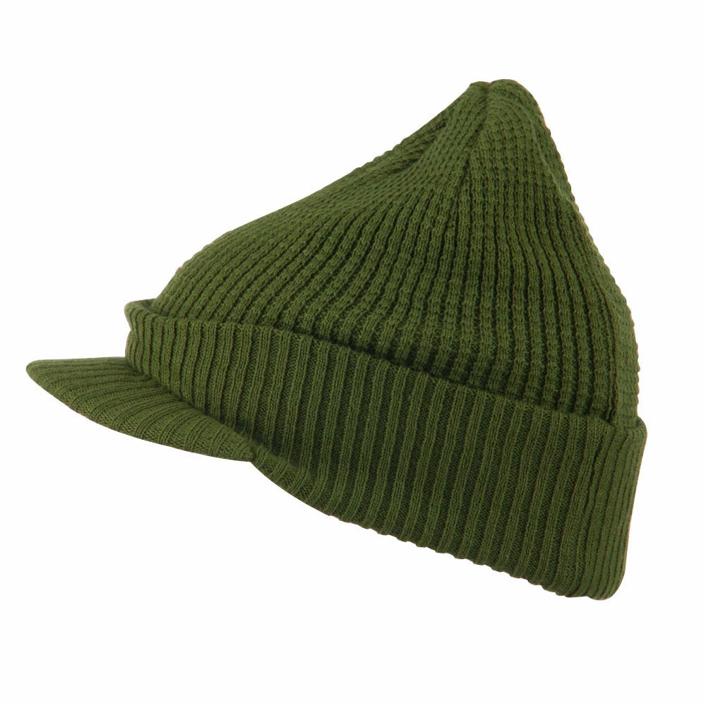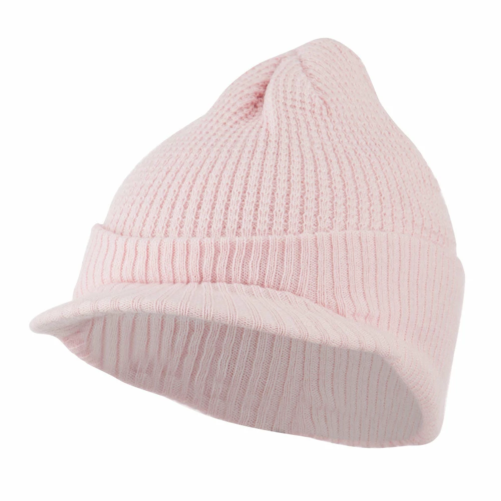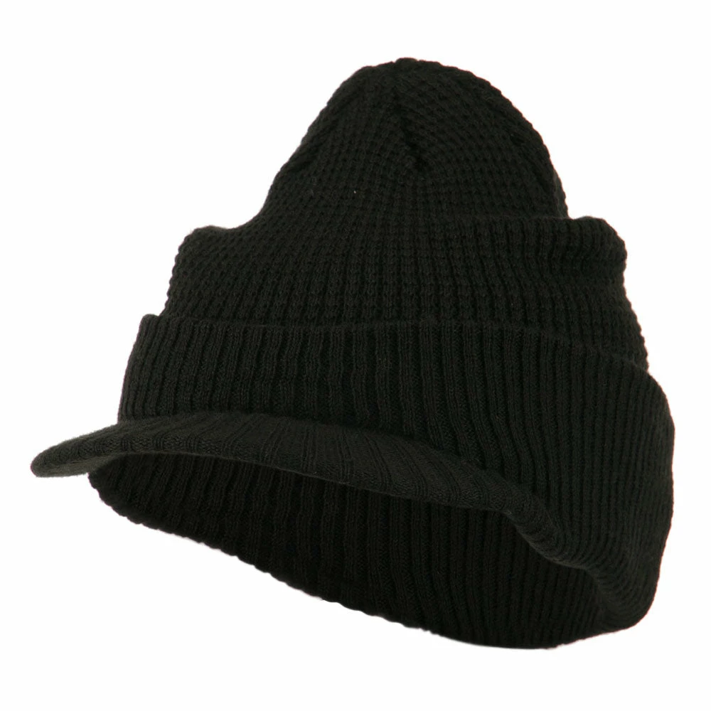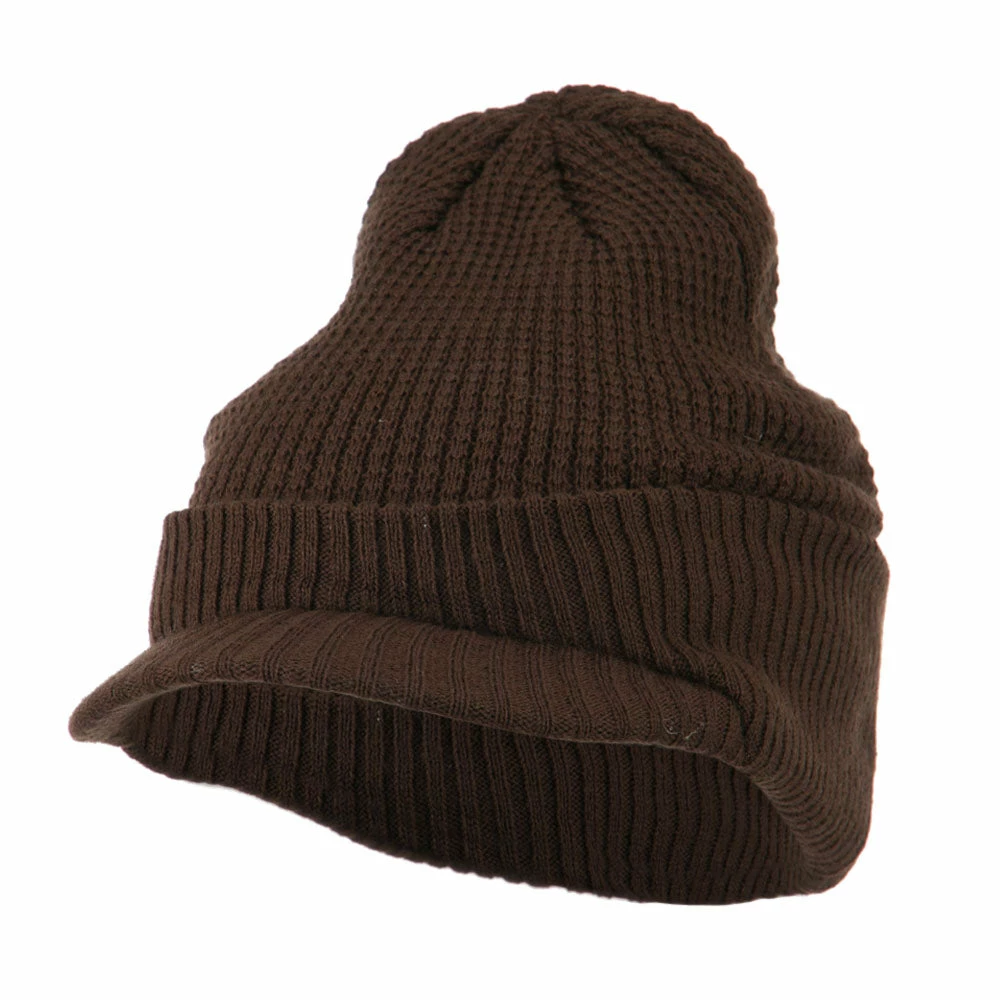 Solid in color, cuff visored beanie hat for everyone.