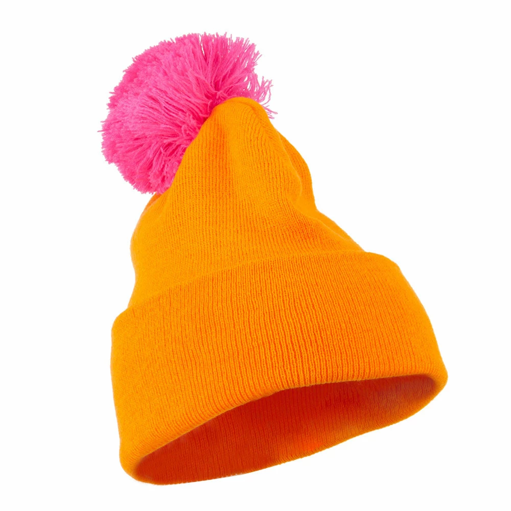 Neon Pom Cuff Beanie