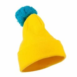 Top of hat is accented with pom pom.
