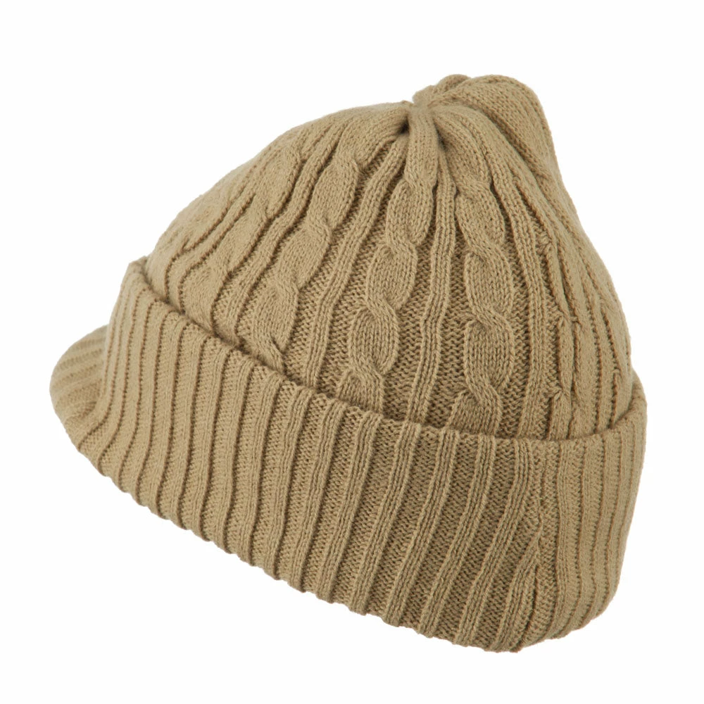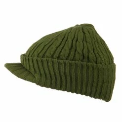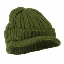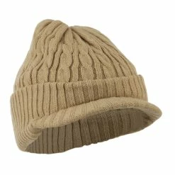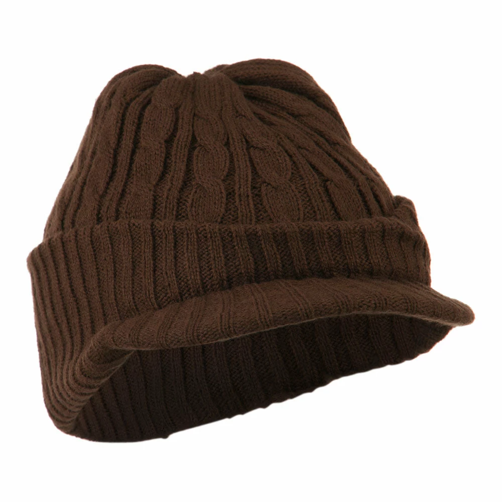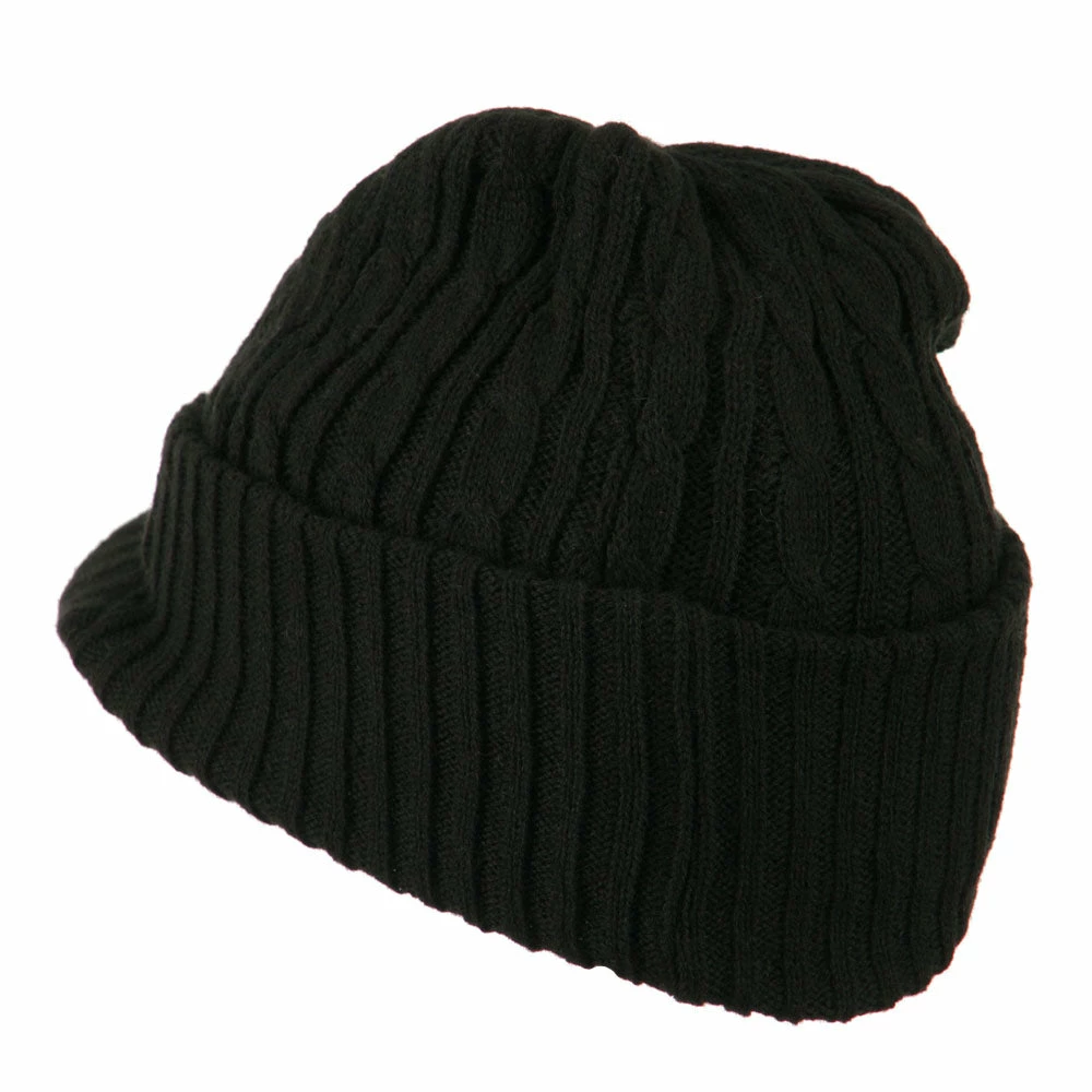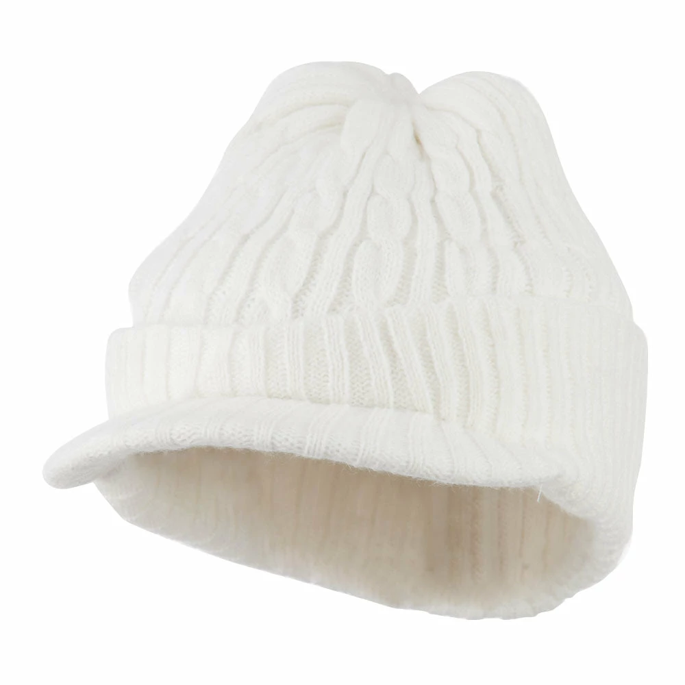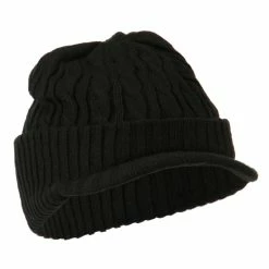 Solid in color, knitted cuff visored beanie hat for everyone.
