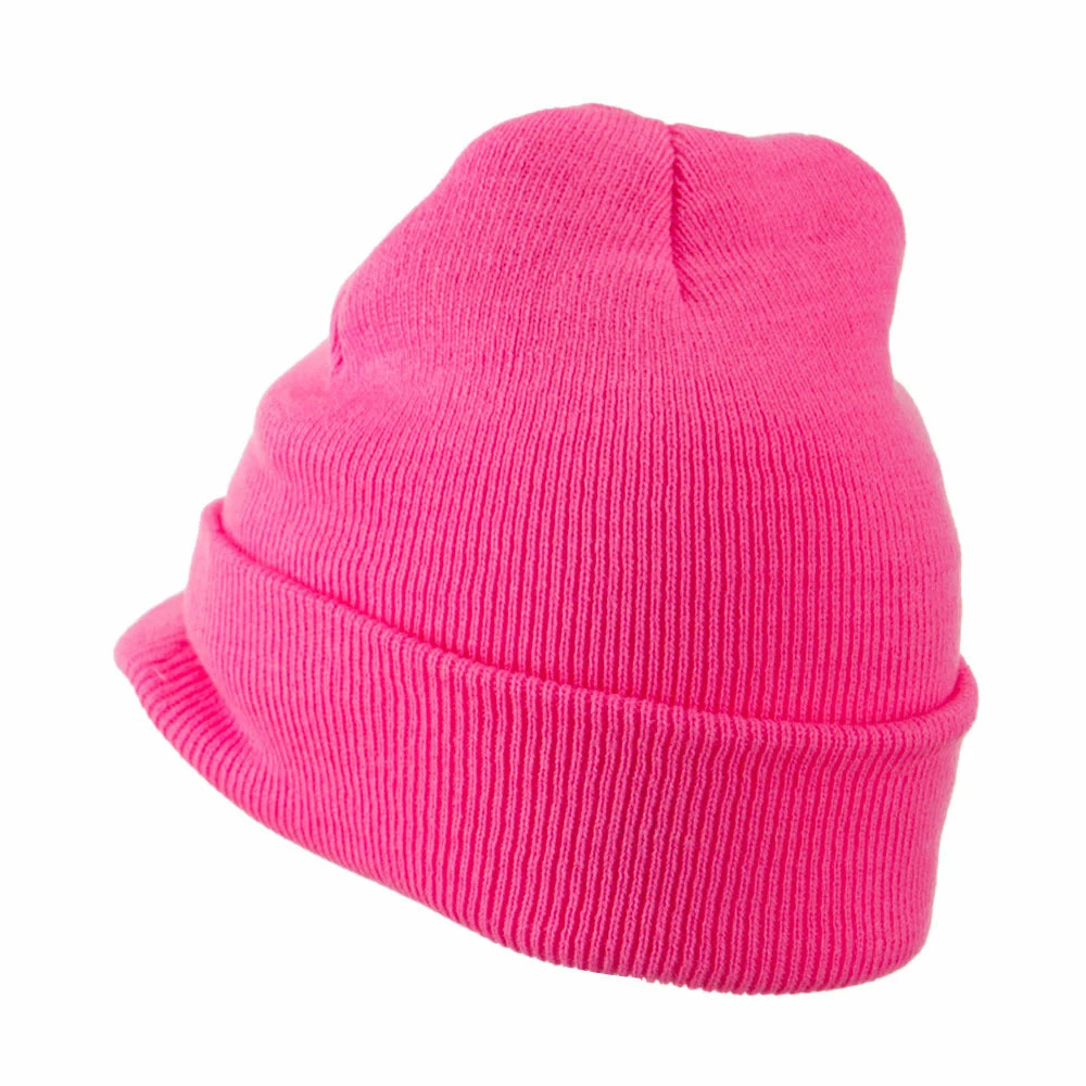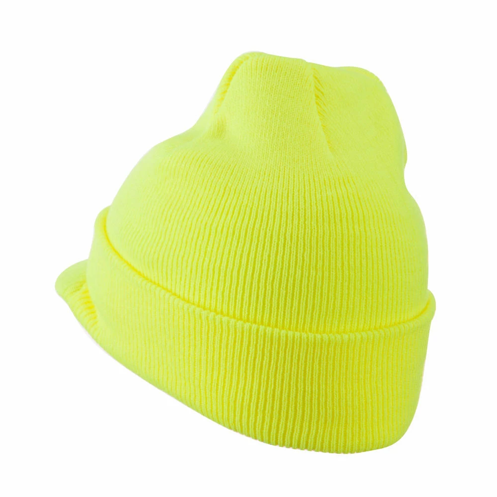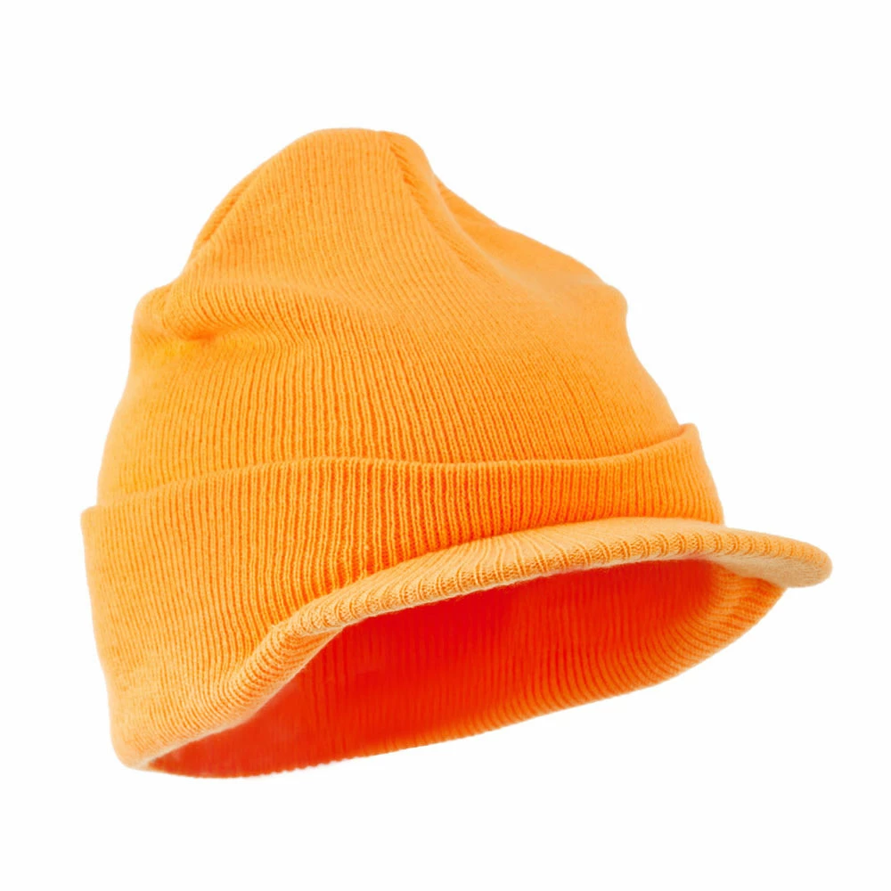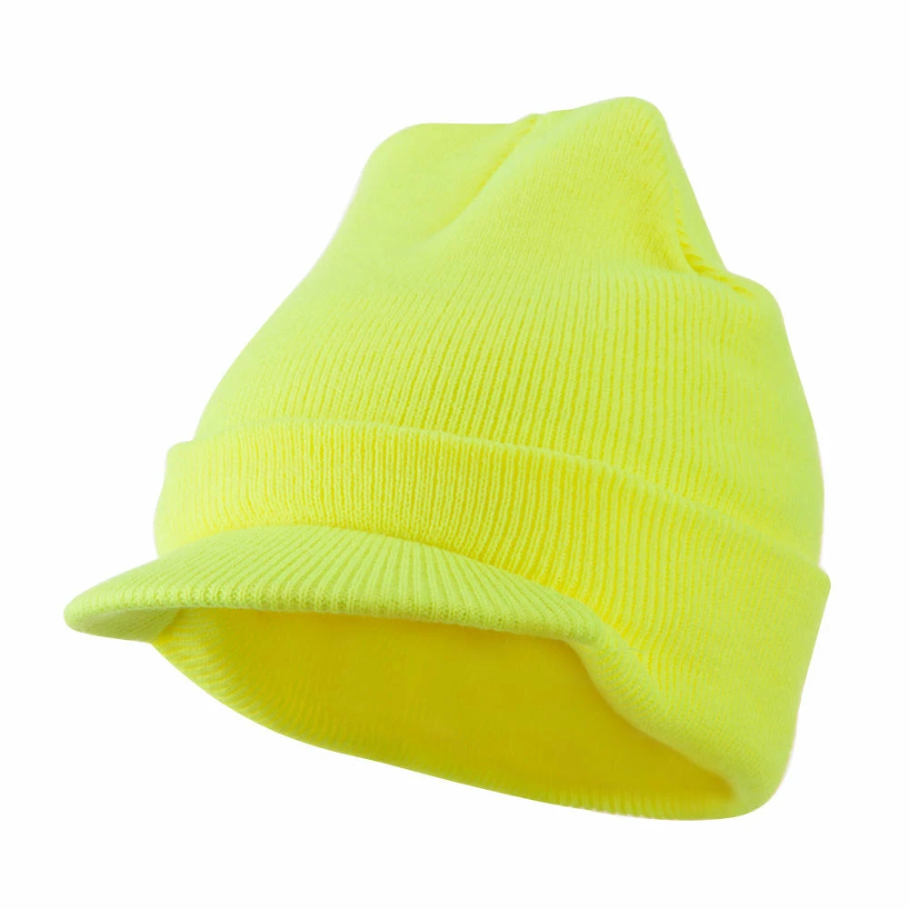 Bright in neon color, high bulk acrylic cuff visored beanie for everyone.