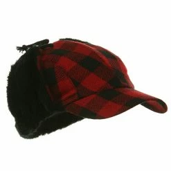OurTraditional Plaid Work Cap is fabulous winter hat that gives you warmth and offers very fashionable look on you.This hat is featured with 2 1/2 inches long pre curved bill and earflaps that measure 3 1/2 inches long. These earflaps are accented with chin strap and earflaps protect and cover your ears in warmth.Made of 50% wool and 50% acrylic, this hat ensures a snug fit as it is fully lined inside.Also, this hat stands out for its unique and eye-catching design as red and black checkered patterns are designed around the crown of hat.This hunter cap is ideal for any outdoor activities in winter.Available in red or black.