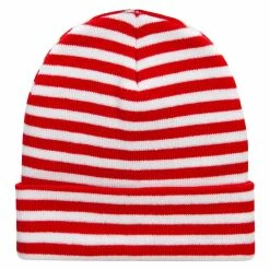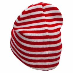Our Red White Wide Stripe Cuff Beanie is the perfect hat for Waldo costumes during Halloween and other special events. This warm and soft cuff beanie is also a fabulous winter hat that will keep your head well insulated from cold elements. This flexible cuff beanie is accented by the thick striped design of red and white. You can roll the cuff of the beanie up or down as you wish. This trendy winter beanie will always keep your head warm while keeping you stylish. Become the funny fictional character Waldo or Wenda this Halloween with our red white stripe cuff beanie.
