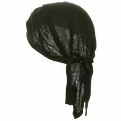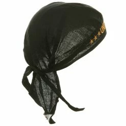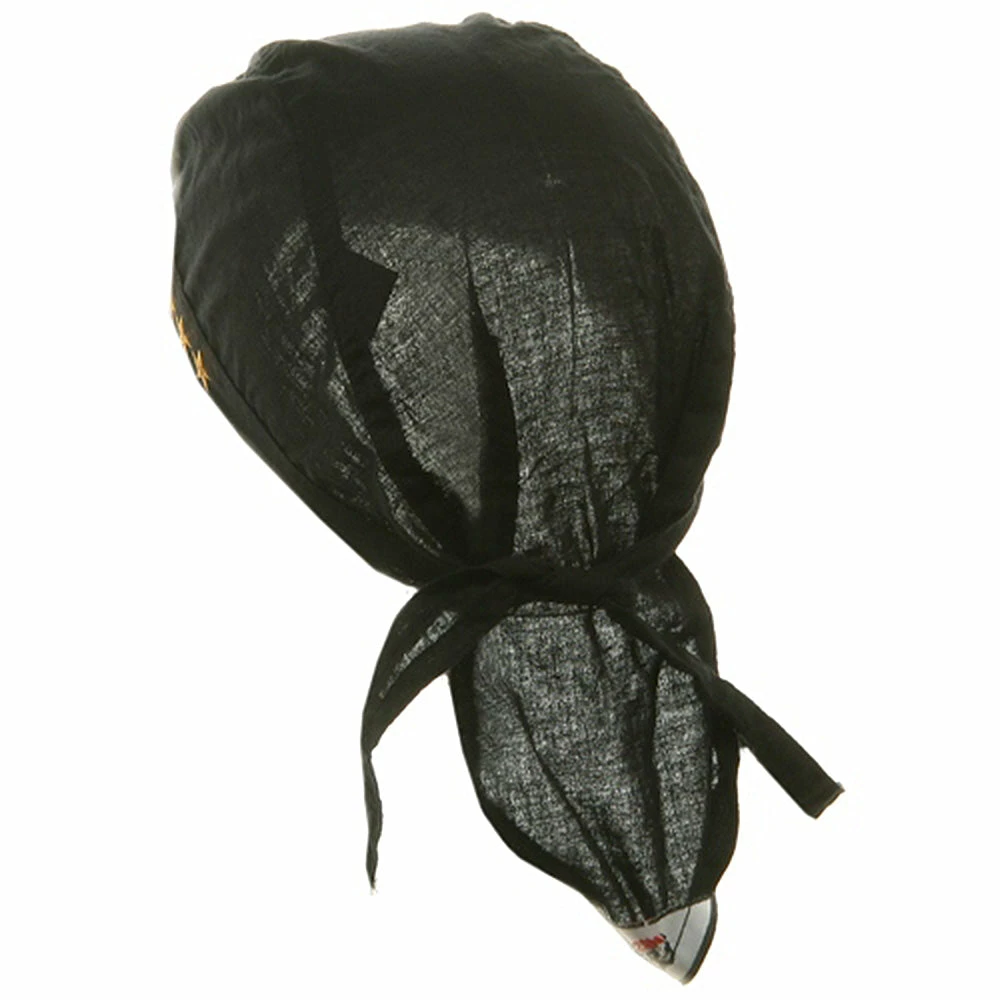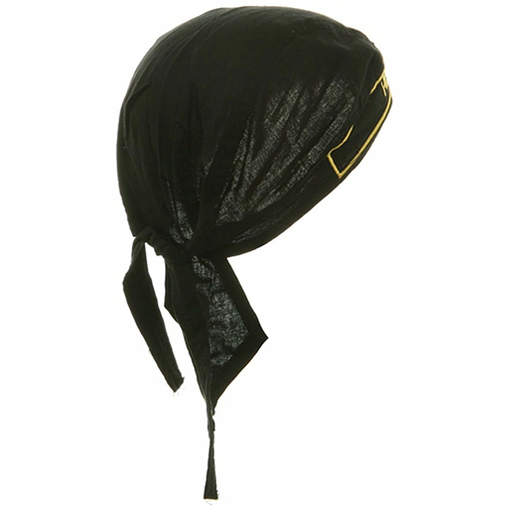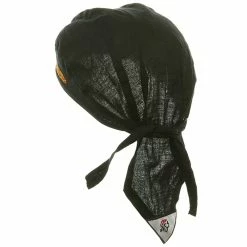 For those who desire a higher quality and sense of luxury in their skull cap, try our embroidery head wrap on for size. Made from 100% cotton, this lightweight black cap is the perfect accessory to flaunt with almost any outfit, and too detailed to hide under any hat or helmet. This amazingly durable hat features a 3 paneled crown, accented by the largeseal embroidered in white on the front of the cap. Designed to keep you looking and felling cool, this cap is also constructed with a thick forehead band. To ensure a snug stay on fit, this thick cap also if fitted with fitted with two side tails, which knot up cleanly in the back. A cap made from the highest quality, and designed for those who accept nothing else, for sure! Available in a variety of colors and styles.