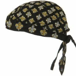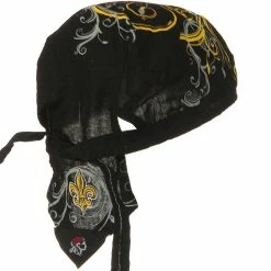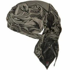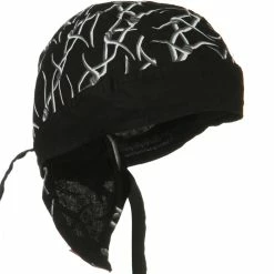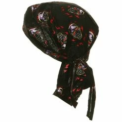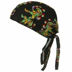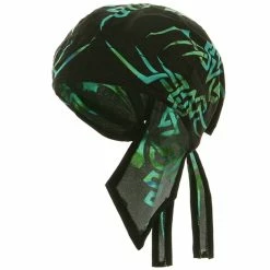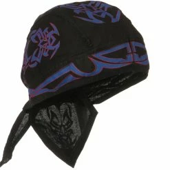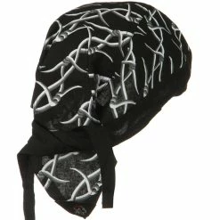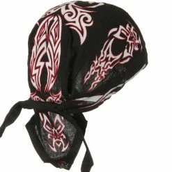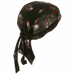This amazingly durable hat features a 3 paneled crown, covered sinister images of fire-eyes skulls with menacing grins.Not a hat to wear home to Mother.Designed to keep you looking and feeling cool, this cap is also constructed with a thick forehead band.To ensure a snug stay on fit, this thick cap also if fitted with fitted with two side tails, which knot up cleanly in the back.A cap made from the highest quality, and designed for those who accept nothing else! Available in a variety of styles and colors.