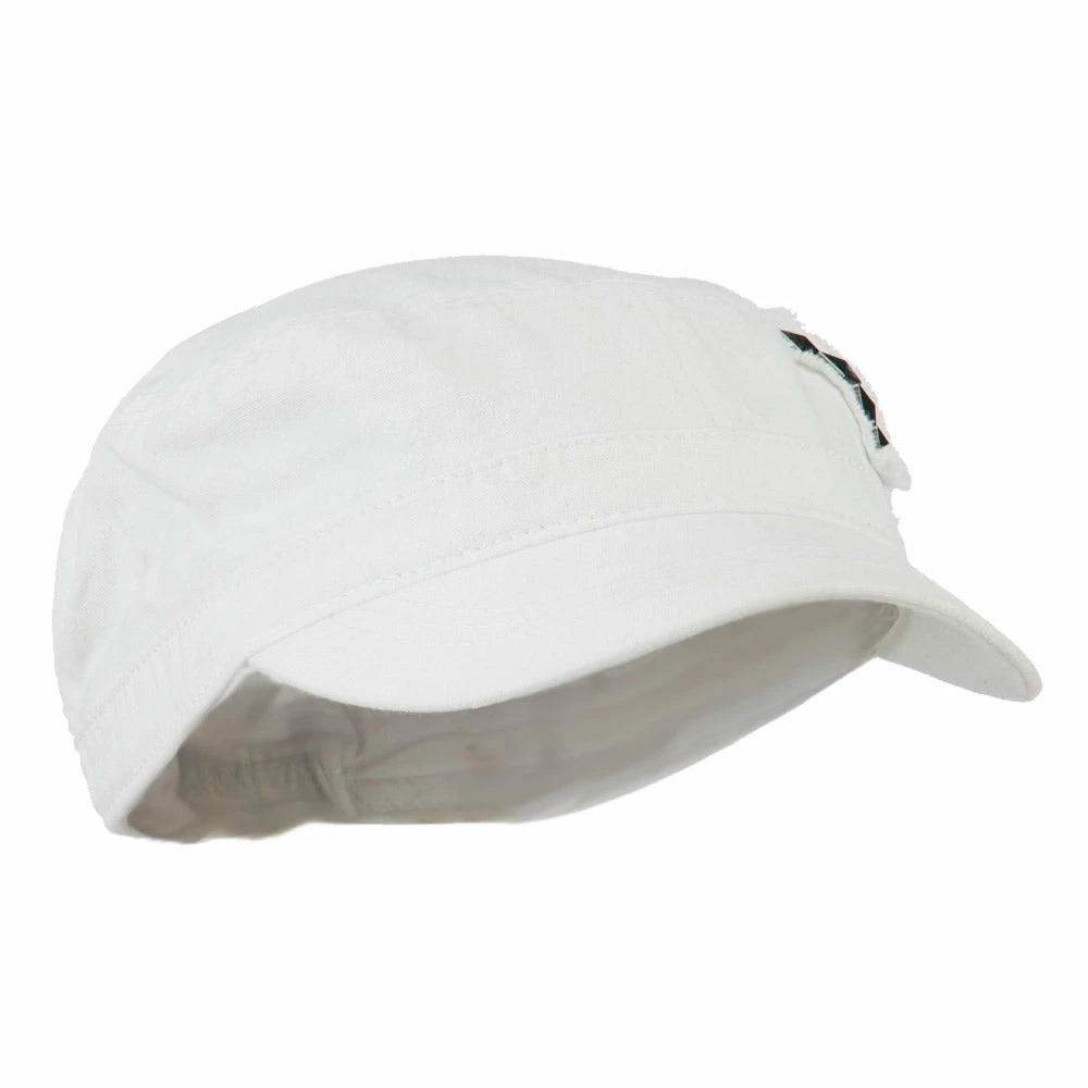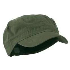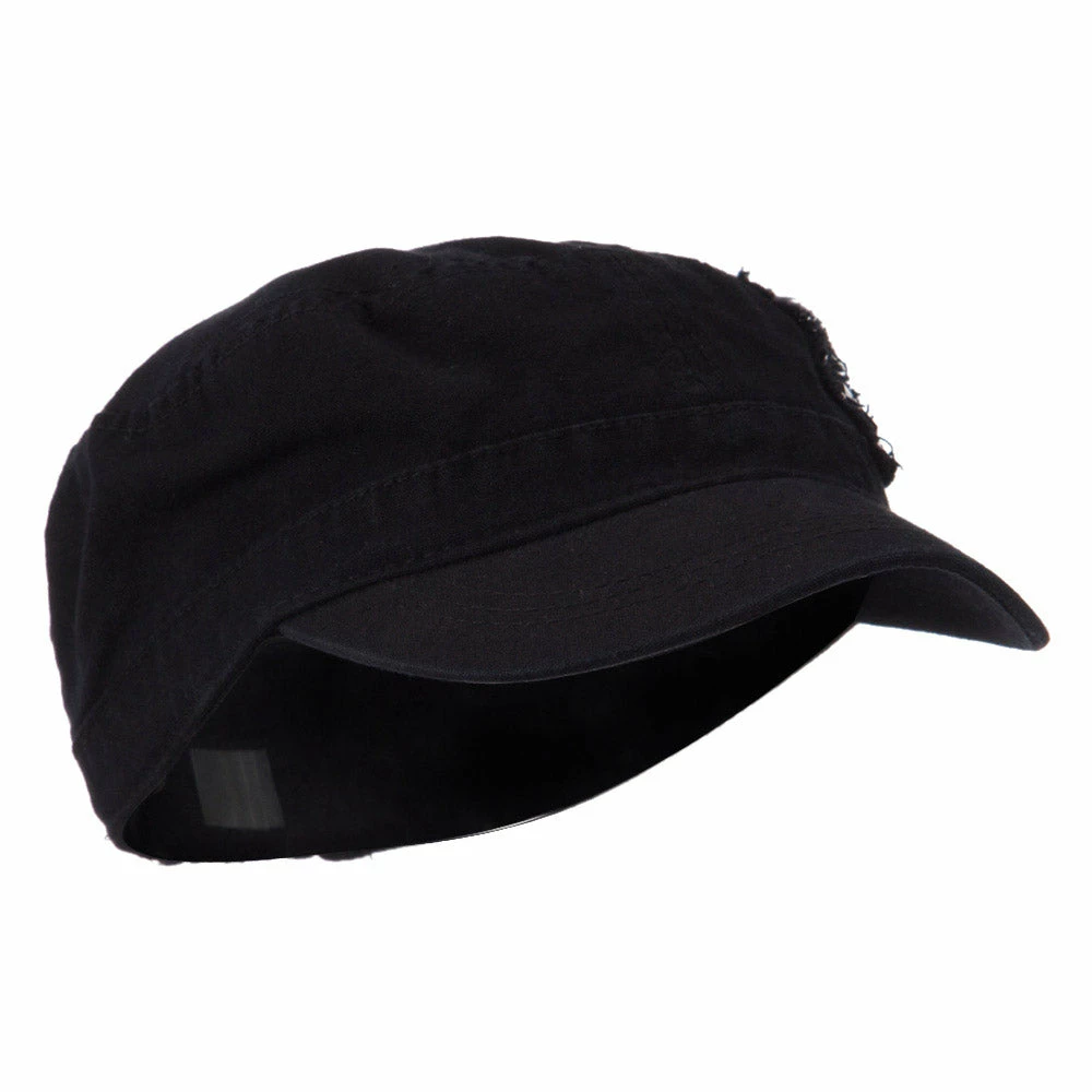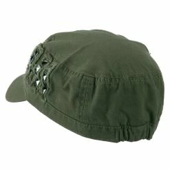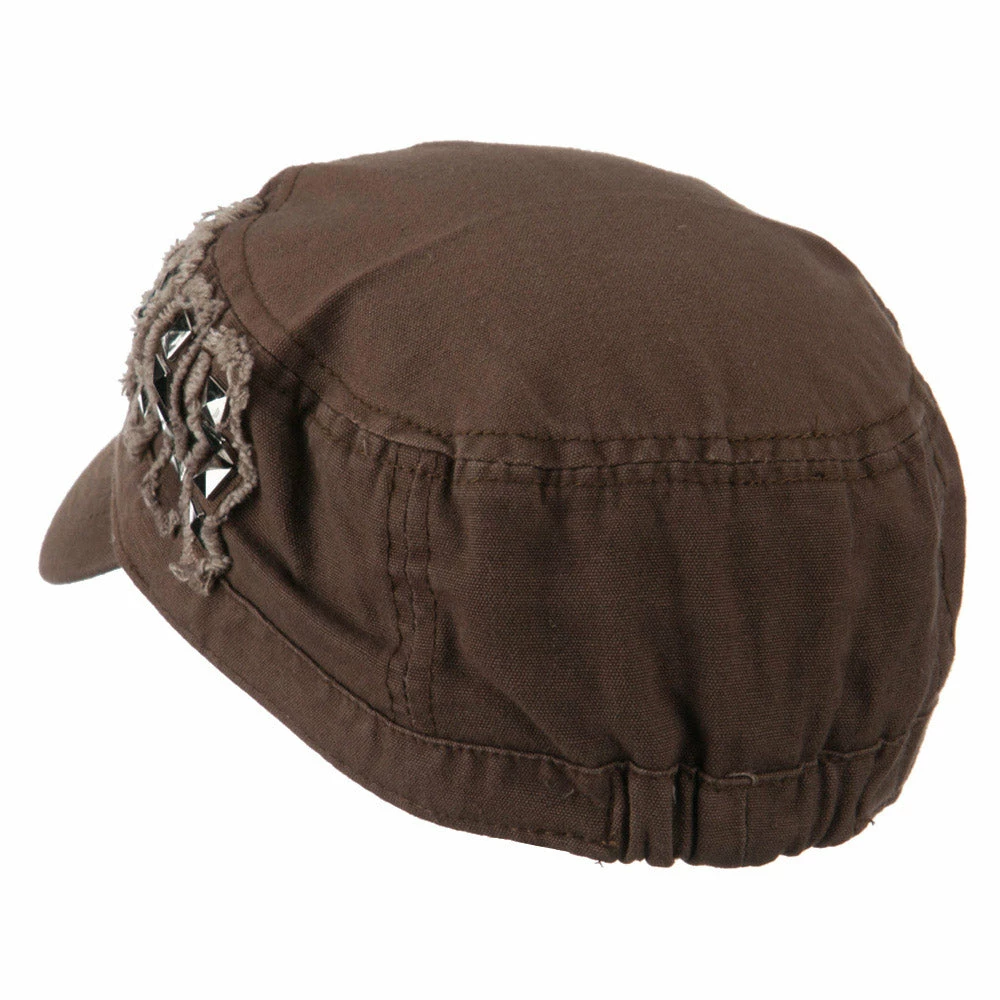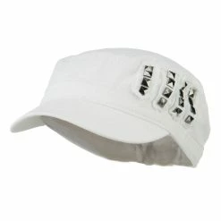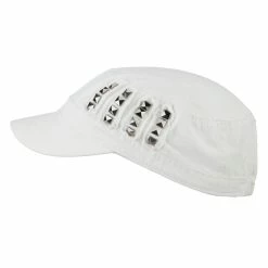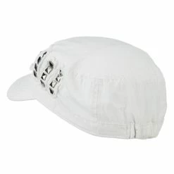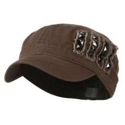 Our Army Cap with Studs will definitely get you trendy look for both men and women. As studs are nicely featured on one side of hat, this jeep style army cap is especially great for those who love studs decoration. This stylish army cap is great for any casual outing in all seasons. Back of hat is fitted with an elastic band closure, allowing perfect fit for most head types. Also, side crown of hat is frayed around the studs for little bit of that vintage look. Thin and crushable material makes this hat an ideal choice to easily carry around anywhere you go. Our jeep style military caps are available in other amazing styles and colors as well.