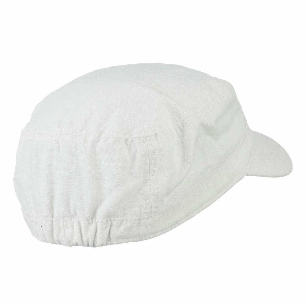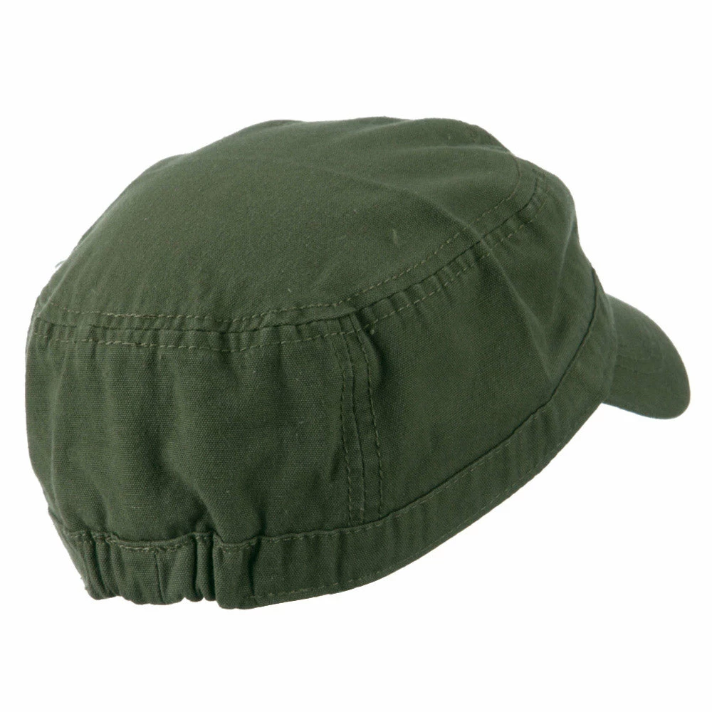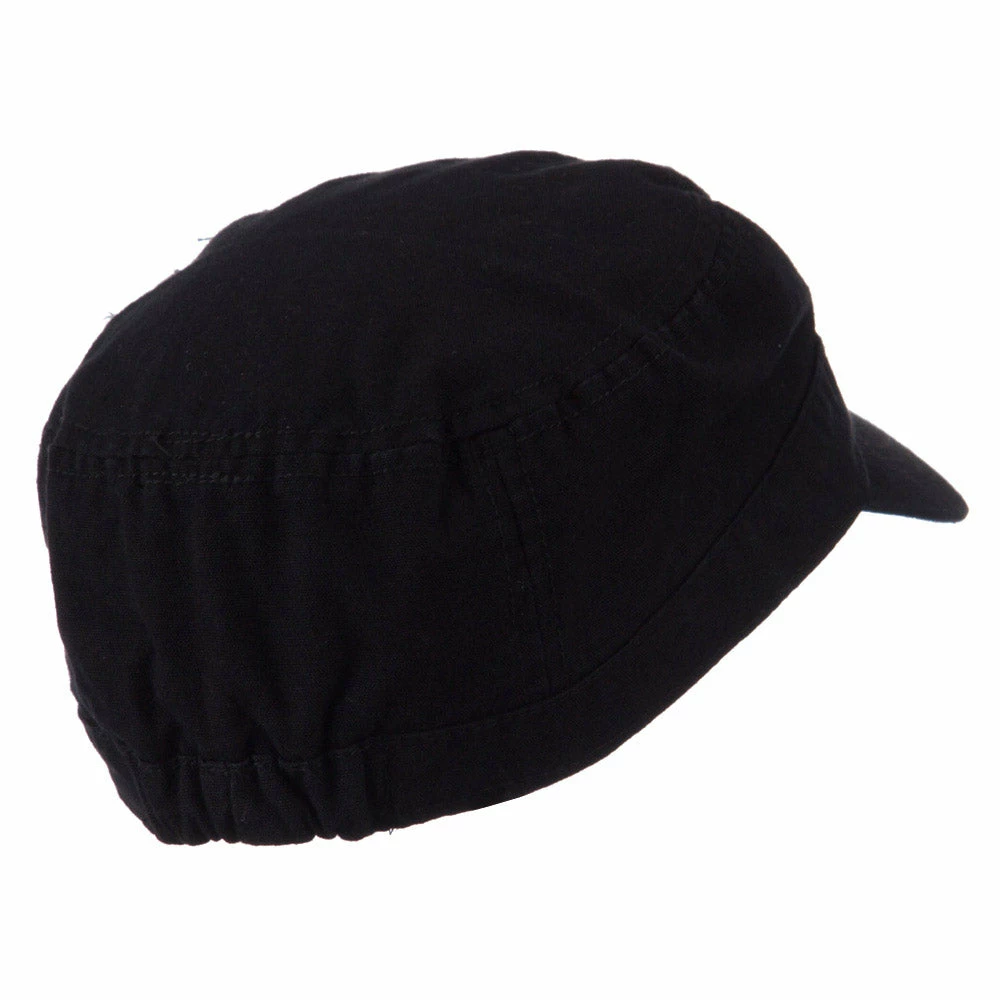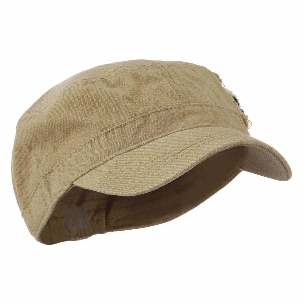 Our Army Cap with Studs will definitely get you trendy look for both men and women. As studs are nicely featured on one side of hat, this jeep style army cap is especially great for those who love studs decoration. This stylish army cap is great for any casual outing in all seasons. Back of hat is fitted with an elastic band closure, allowing perfect fit for most head types. Also, side crown of hat is frayed around the studs for little bit of that vintage look. Thin and crushable material makes this hat an ideal choice to easily carry around anywhere you go. Our jeep style military caps are available in other amazing styles and colors as well.