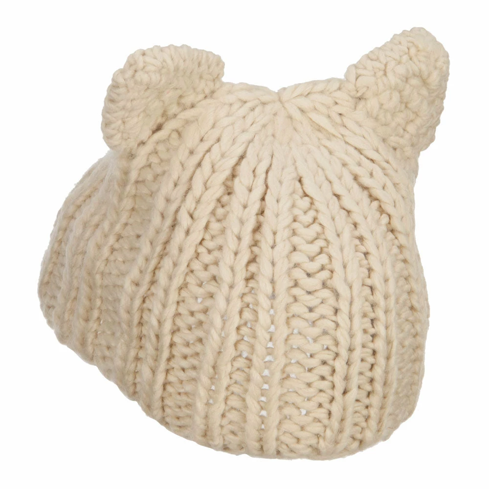J Hat Pom Pom Accented Knitted Bear Hat
