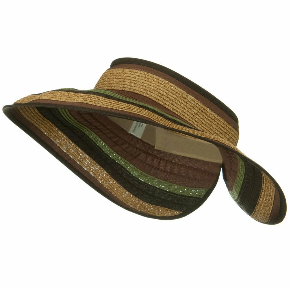 The UPF 50+ Wide Brim Ribbon Braid Roll Visor provides great UV protection for when you’re out and about! The wrap-around design of the visor and UPF 50+ rated fabric in combination offers a great area of coverage under the visor. You’ll be protected against the sun all around your head. Avoid unwanted sunburn! The visor is made of a blend of polyester and paper straw for fashionable design. The colors work especially well with a single-colored outfit. It features a light sweatband and features a strap closure on the back.