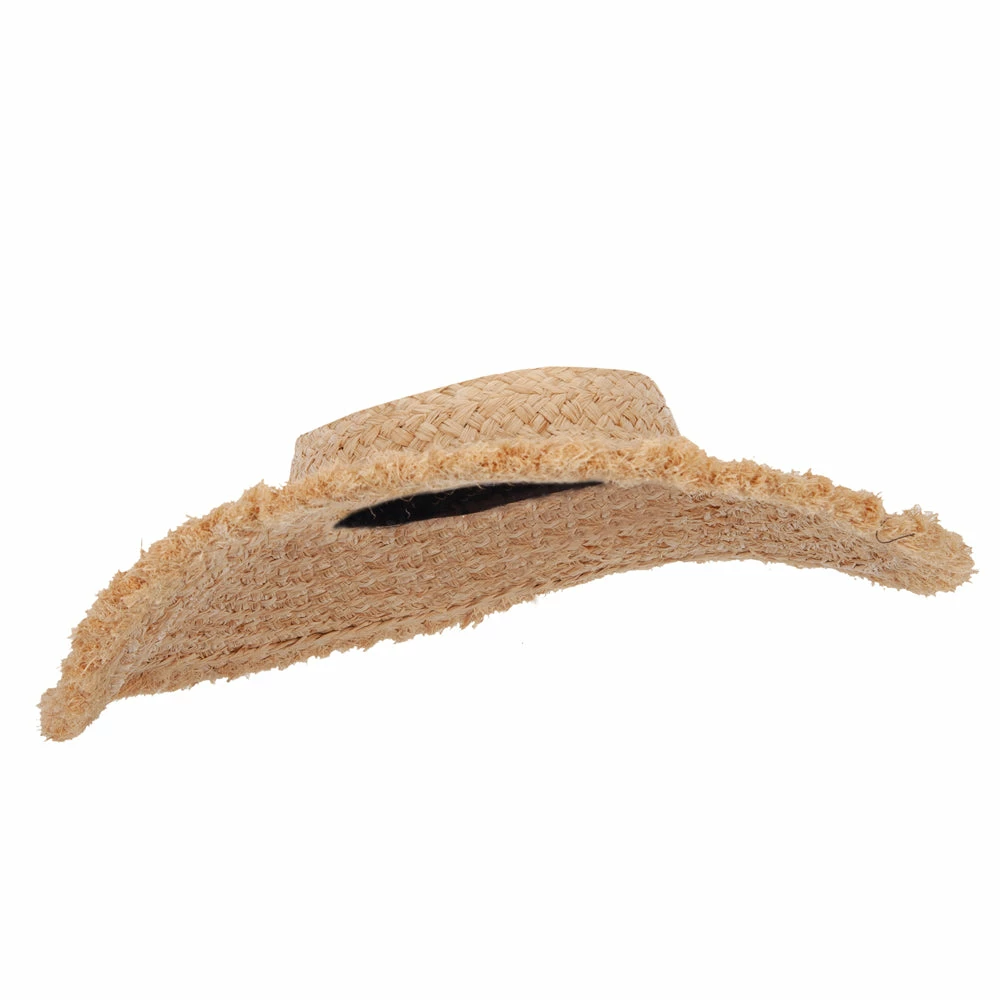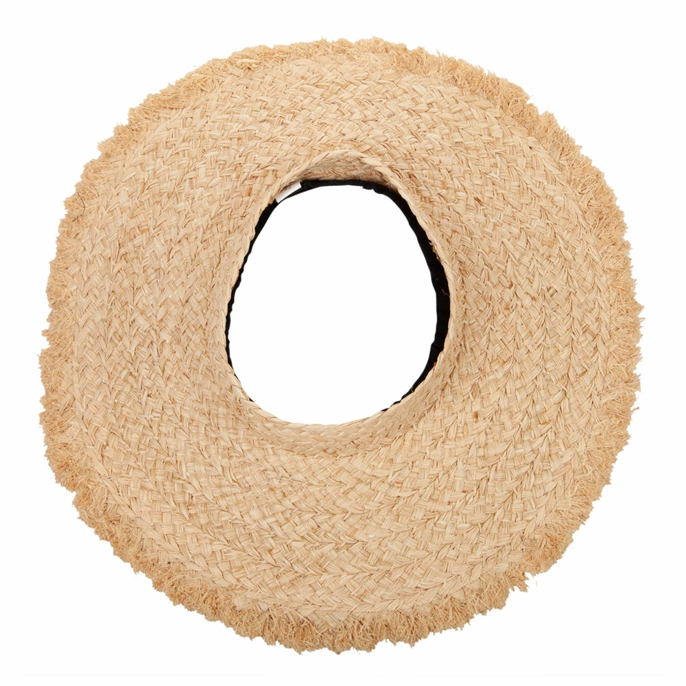 Women’s Raffia Crownless 5 Inch Wide Brim Fringe Edge Visor Hat