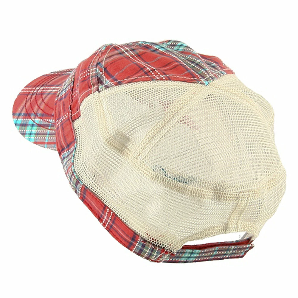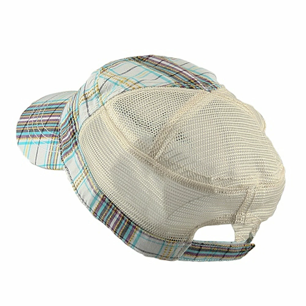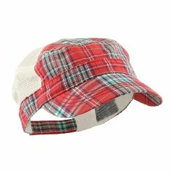 Blend the jeep army style with trucker cap look and you will get anFashion Plaid Mesh Army Cap. Made from 100% cotton, this unconstructed hat features 3 inches roomy crown, 7 panel, with mesh fabric as the back half and a 2-1/4 inches long pre-curved bill. Designed to fit almost any head, this hat also has an adjustable strap tab in the back, just in case you need a little extra room, and perhaps to give it a more snug appearance. Whether your head is shaved or not, this look is one that will have them staring in attention!