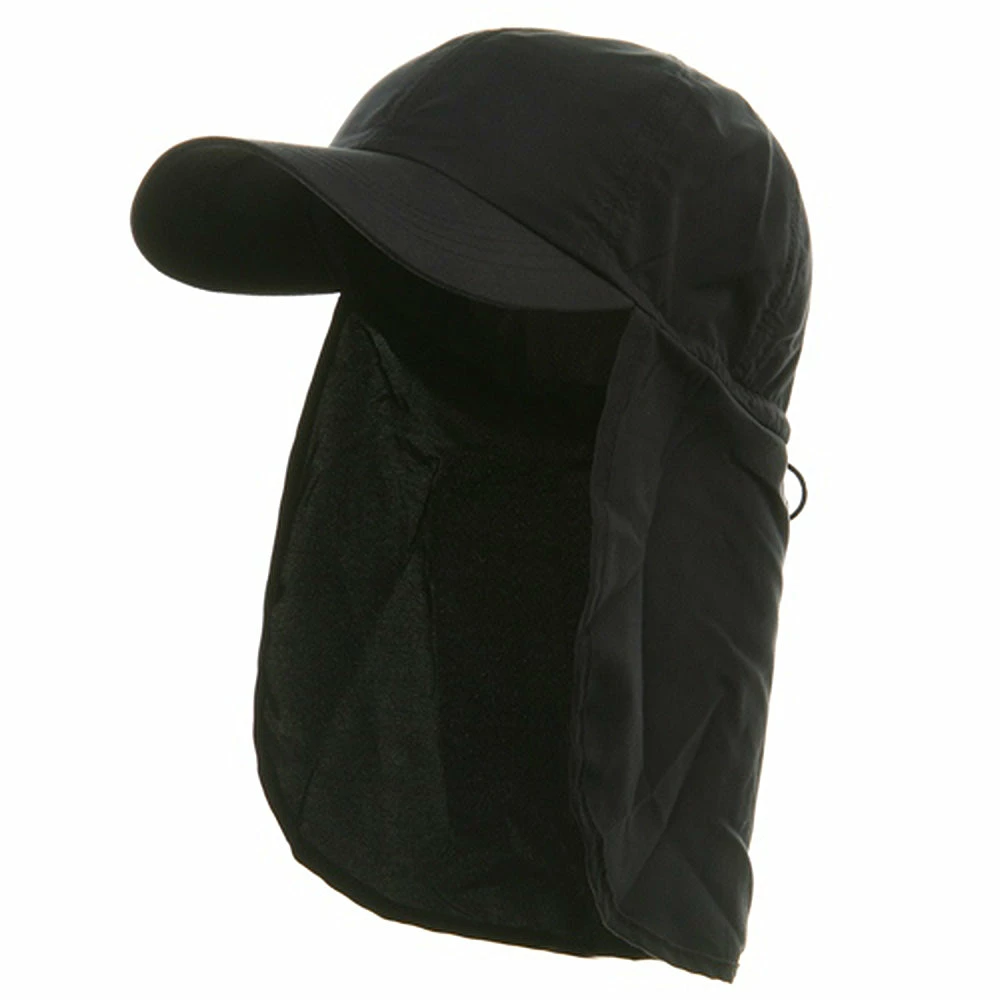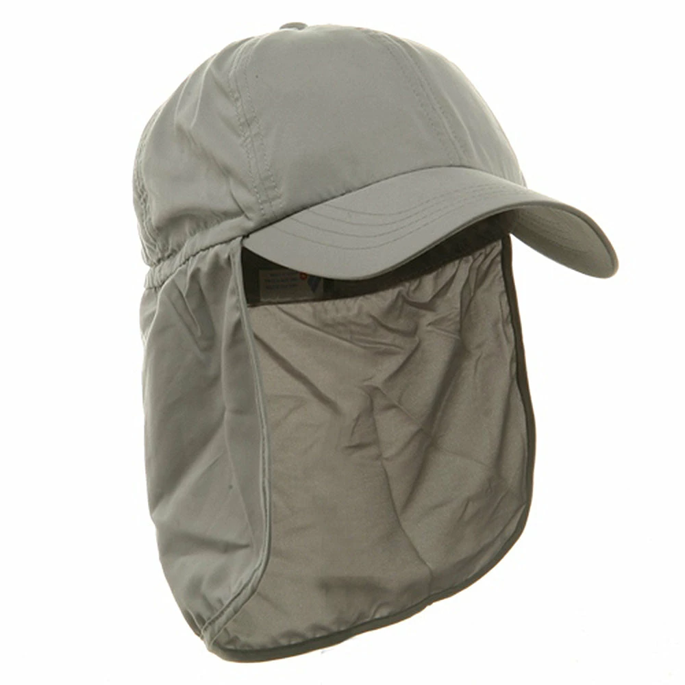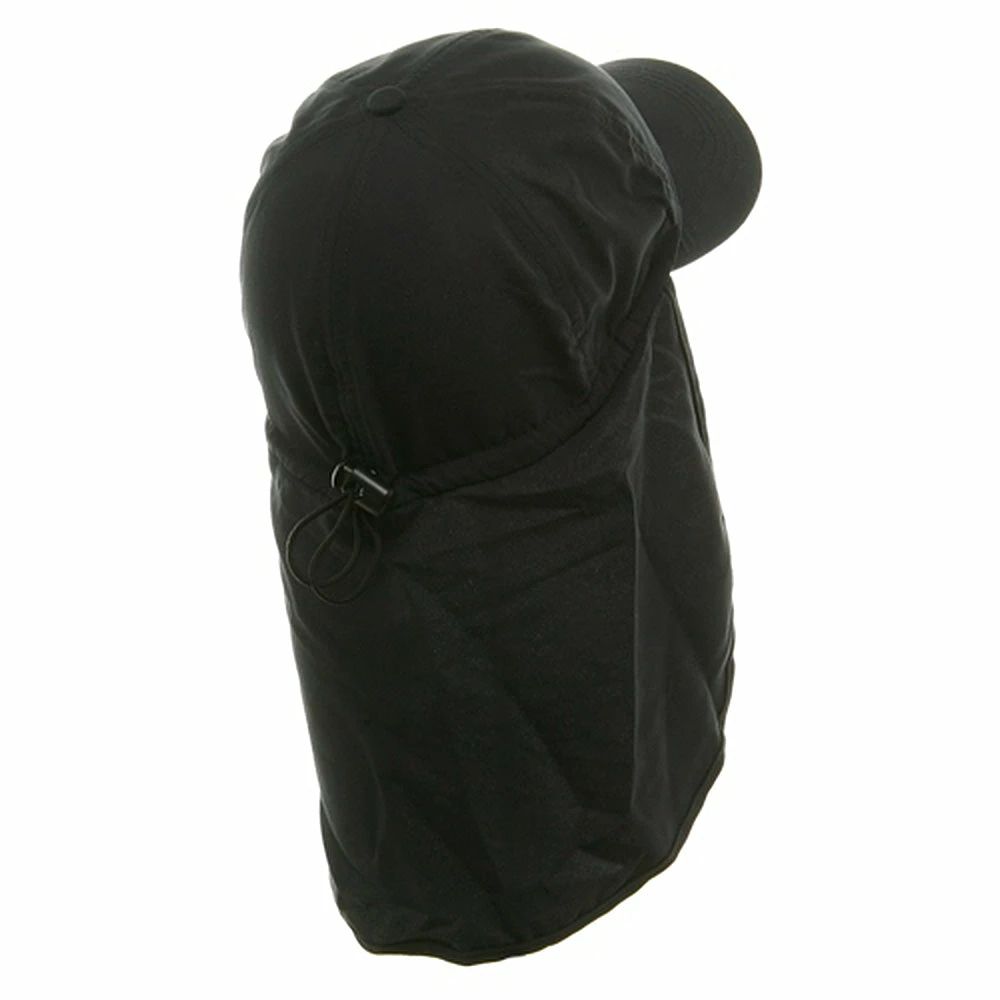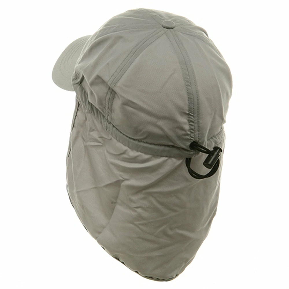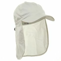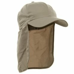 Planning your next camping trip or hiking adventure, make sure ourBrushed Sun Cap with Flap is on your checklist. Made from a unique water repellant micro fiber, this brushed cotton twill hat is ideal to take along on small outdoor excursions, offering all the protection of our much bigger caps, without all the unnecessary “extras”. Featuring a 6 paneled crown with breathable mesh lining and inner sweatband, to allow full ventilation and circulation of the head, this hat also boasts a 2 3/4″ long precurved bill to provide your face with roomy shade and shield you from the sun. Attached in the back with an7 1/2 ” long neck cap, and self adjusting elastic closure with toggle, you are sure to have the perfect fit and protection you require on your particular activity. Lightweight and easy to pack almost anywhere makes this hat the ideal vacation or trip hat. Simply pack it, stuff it, fold it or crush it, only to have it come out looking brand new every time. Guaranteed to be a hat that will not disappoint. Try one in any of our four amazing colors: , Khaki, White and Navy.