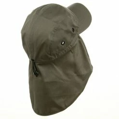 Crown features 5 Panels, with an attached fabric flap 7 1/2″ long.