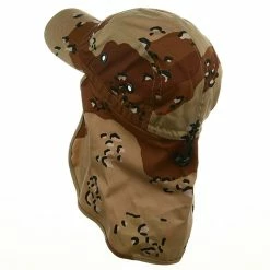 Planning your next camping trip or hiking adventure, make sure ourcamouflage Sun Cap with Flap is on your checklist. Made from a unique blend of cotton and, this hat is ideal to take along on small outdoor excursions, offering all the protection of our much bigger caps, without all the unnecessary “extras”. Featuring a 5 paneled crown with breathable brass lined mesh holes to allow full ventilation and circulation of the head, so you never have to worry about “over heating”. Boasting 3″ long precurved bill and 7 1/2″ long fabric neck, to provide you with roomy shade and shield you from the sun. Fitted in the back with a self adjusting elastic closure with toggle, you are sure to have the perfect fit you require on your particular activity. Lightweight and easy to pack almost anywhere makes this hat the ideal vacation or trip hat. Simply pack it, stuff it, fold it or crush it, only to have it come out looking brand new every time. Guaranteed to be a hat that will not disappoint. Try one in any of our amazing colors: Camouflage, Grey, Khaki,Camouflage, New , Olive and Safari Camouflage.