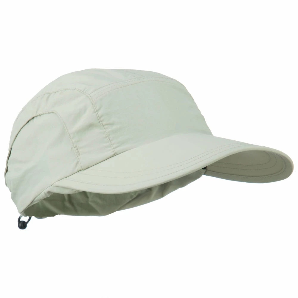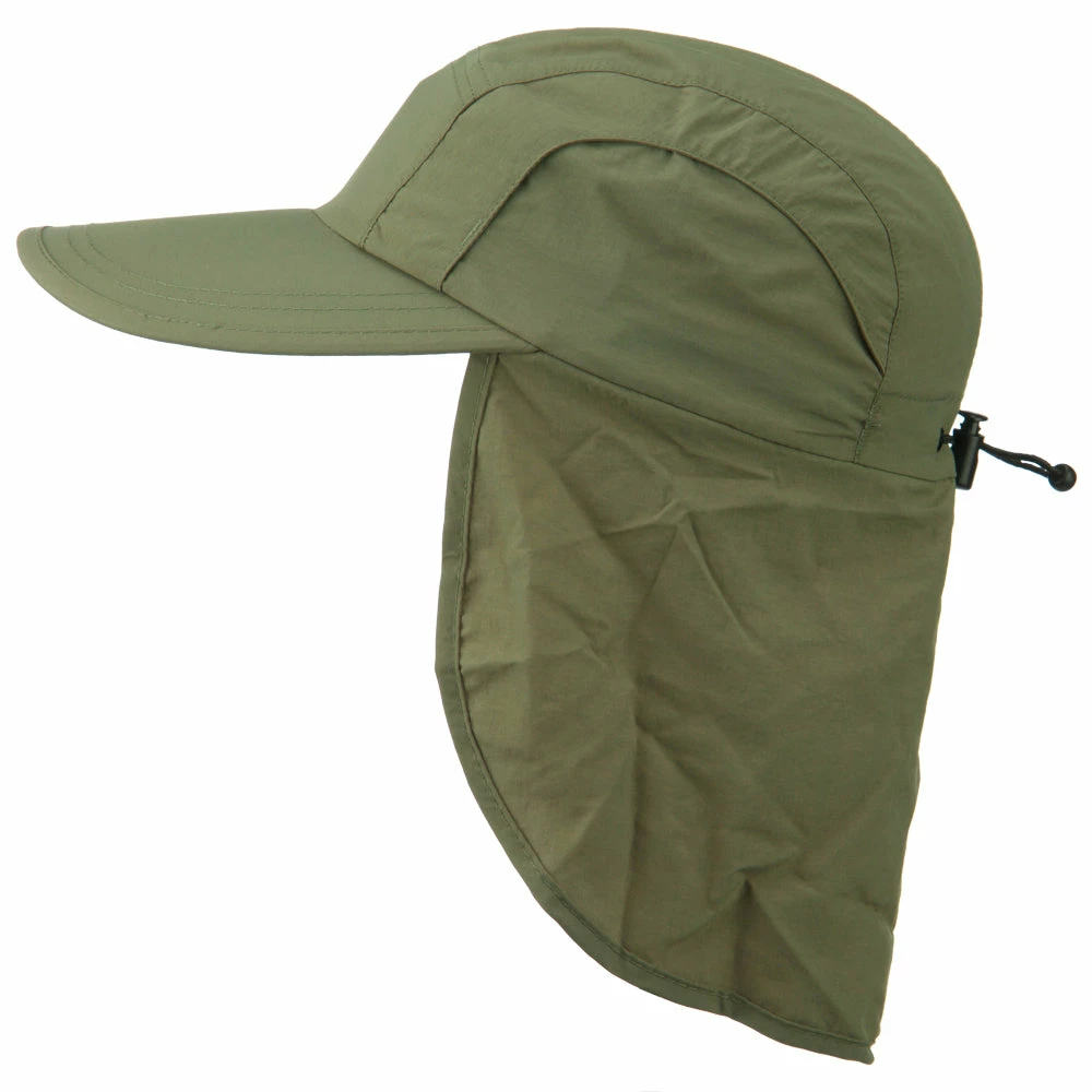 This drawstring flap cap is made of special material that blocks 99.9% of the harmful UV rays.