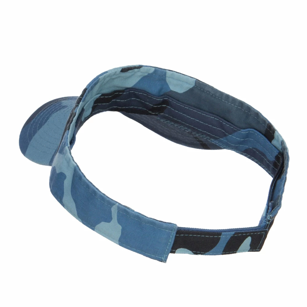 Get that great and popular army look without the life commitment in our uflage printed visors. Featuring 3 panels of a traditional uflage pattern and coloring, this bold visor sports a 3″ long precurved bill perfect for protecting you from sun, wind and rain. Made with a strap tab in the back, this tab along with the visor’s inner fabric lining will help you achieve just the right fit and look you are seeking. Made with reinforced stitching and durable cotton, this hat will last you many seasons to come. Lightweight and easy to pack, there is no reason why you should get one in each of our amazing uflage patterns: Traditional, Purple, Safari, City, Sky and Yellow.
