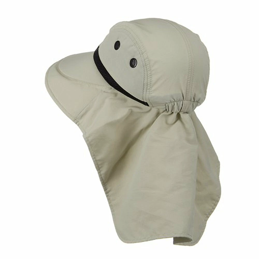 If you are looking for full sun protection hat, ourMoisture Management Large Bill Flap Cap is just for you! No worries even for this hot summer with wearing this wonderful sun flap cap. This flap sun cap features large bill that goes around the hat and back flap measures 8 inches long and about 14 inches wide, providing maximum protection and coverage from the hot sun and heat. This extreme outdoor hat is also made with cool mesh material and terry sweat band is featured inside the hat, so you will have no worries from sweating in hot weather. This sun flap cap features 2 big mesh eyelets on each side of hat, allowing your head to be well circulated. Made with thin, soft and cool material, this flap cap will keep your head cool this summer and it will provide maximum circulation and refreshing coolness at all times. Get this amazing sun protection flap cap which is perfect for any summer outdoor activities.