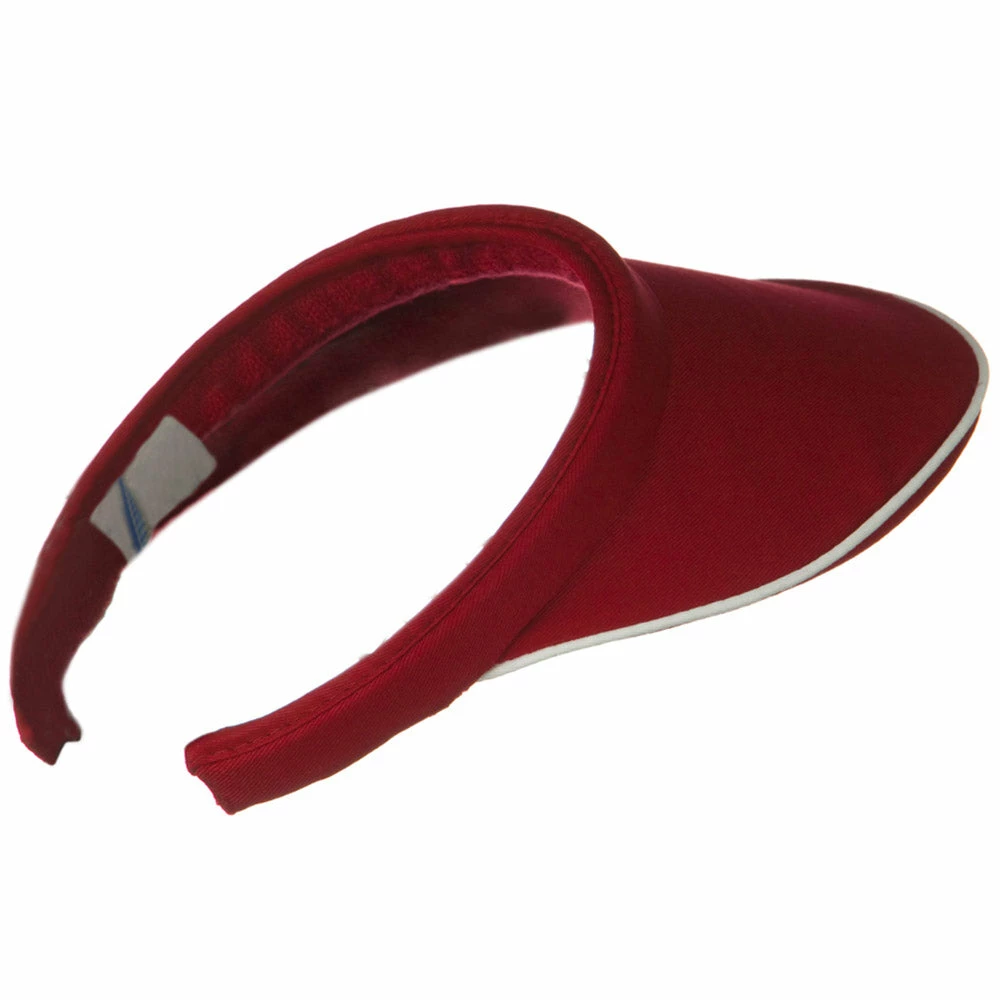 For simple, no nonsense protection this summer, choose our piping clip on visor. Made from 100% cotton, thissturdy clip on is perfect for so many of your outdoor activities this season. Featuring a 1″ high crown, attached to a 3 1/2″ long and 9″ wide bill, accented with black piping along its outer edge. The flexible clip on makes this visor a great and easy fit for almost any head. Get one today!