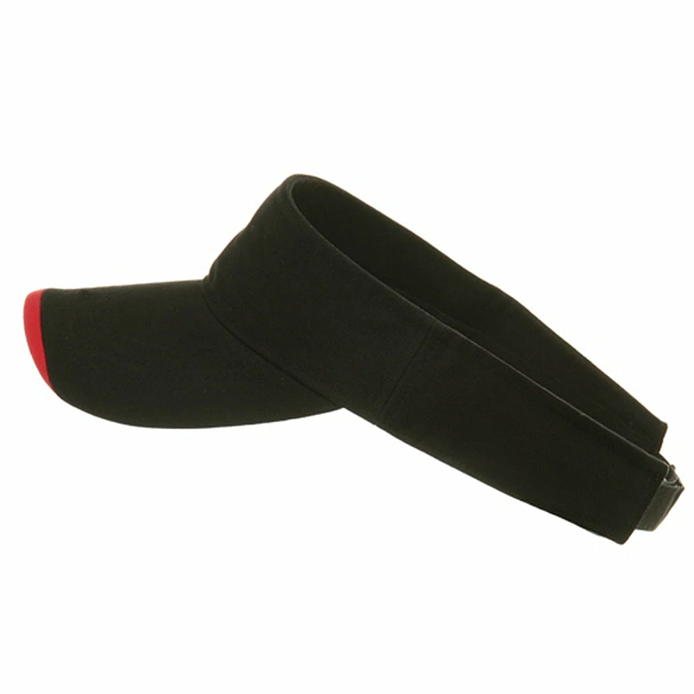You don’t have to play like a pro to look like one when you wear our new pro style deluxe visor. Made from 100% cotton, this black hat is perfect for all your outdoor activities. Whether you are a professional or just watch them from the comfort and safety of your couch, the 3/4″ sweat band and 3″ inch long red tipped visor will provide you head with maximum protection and cool comfort until half time. Featuring three thick panels, this hat sports a 2 1/4″ high crown, made with reinforced stitching for added durability and support. Secured in the back with an adjustable strap , allowing you to choose the perfect fit for your head. No mater what you are doing,camping, hanging out with your friends by the pool or maybe even going for that championship win, this hat is guaranteed to make you look and feel like a winner.