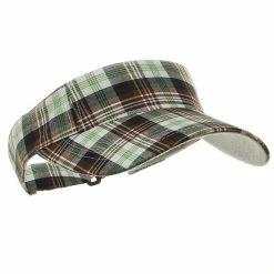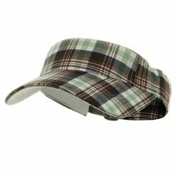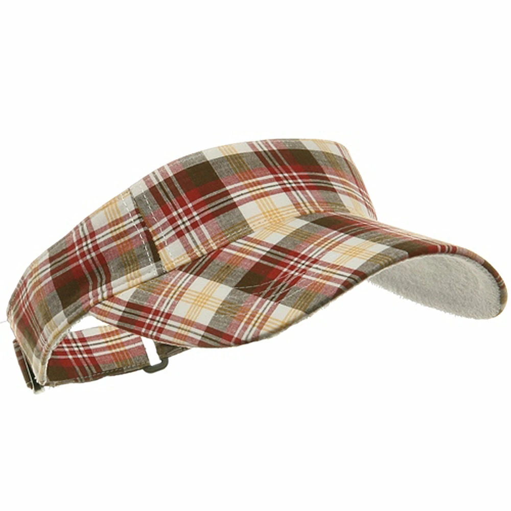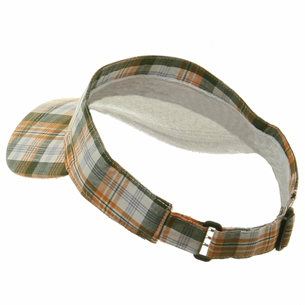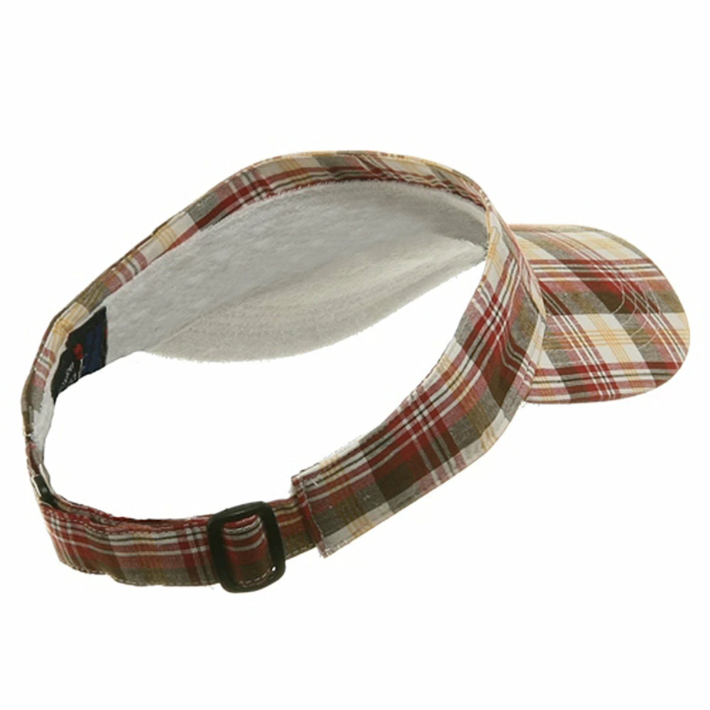 Look fashionable this summer in ourPro Style Plaid Visor. This cap matches well with any casual outfits as well of dressy-wears. This visor cap is made from 100% cotton and cap is fitted with plastic buckle closure in the back, fitting up to headsize XL. This stylish visor cap features checkered plaid patterns. Crown of cap measures 2 inches high and pre curved bill measures 3 inches long, and this visor cap will protect you from the hot sun/heat. Also, cap features cotton terry under the bill and there is sweatband inside the cap, so it can wash your sweats away. This cap is hand washable. Do not forget to try this stylish visor cap with plaid design in different colors we offer.