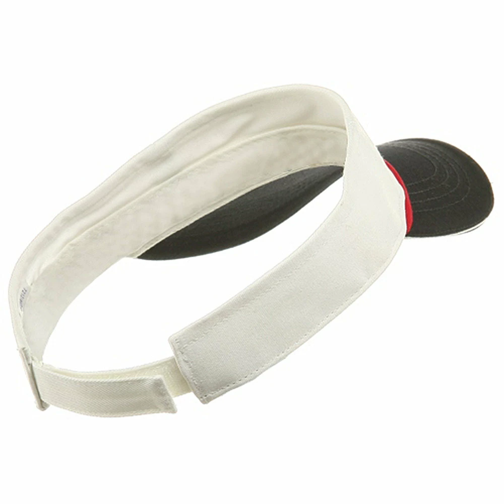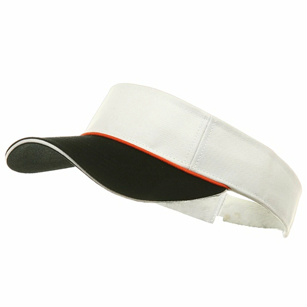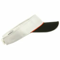 Get ready for all this summer’s hottest sports in pro style two tone visor. Made from 100 % cotton, this orange and black visor is ideal for your trips about town, while you’re on vacation or even while you’re working out at the gym. Featuring a 2 3/4″ long black bill, with a slice of white “sandwiched” in between, this visor not only provides great protection from the weather, but also has a very unique and hip look. Boasting 3 white durable panels, the 2″ high crown, is constructed with reinforced stitching and an inner fabric sweat band for your comfort. Just for added flare, there is a orange piping decoration at the crown’s base, and runs along the top of the visor’s bill. For those who like to have a little more control over their hat, this visor is fitted with an adjustable strap in the back, so you can choose the fit that is best for you. Lightweight and easy to pack, this cap is perfect to take with you anywhere, or even just to wear around the house.