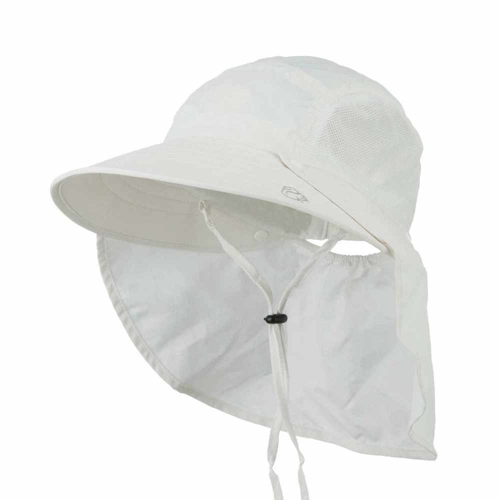Protect yourself from the sun with our UV 50+ Talson Large Bill Hat with Detachable Flap for your next summer outdoor activities. This UV 50+ sun protective wide bill hat provides your head ultimate protection from harmful sun rays. This thin and breathable mesh fabric of hat makes sure your head stay in cool condition at all times. Also, inside of hat is fitted with a sweatband to keep your head dry from sweating. Moreover, back of hat comes with removable flap that will keep your neck protected from the sun as well. You can remove this back flap and wear the UV wide bill hat by itself as you wish. Hat comes with adjustable toggle chin string to adjust tightness and fit of the hat. This UV talson flap hat is an excellent hat for all outdoor expeditions that will shield you from the sun while you enjoy.