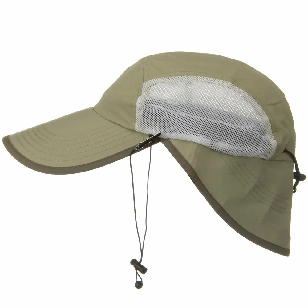 OurUV 50+ Talson Short Flap Cap provides you ultimate protection for your summer outdoor activities like fishing, camping, hunting, exploring and others. Solid in , this lightweight ball cap features meshed sides in white, allowing your head to be well ventilated even in hot summer. Also, back of cap is attached with flap for more of coverage from hot sun. This is UV 50+ sun cap that provides excellent sun protection for your whole head. Inside of cap is fitted with terry cloth hat band to keep your head dry from sweating. Made with thin and cool nylon material, this comfortable and breathable fabric of cap helps for easy body moisture absorption and quick dry out. For added feature, hat comes with chin string with toggle closure and this can be detached as well. This durable UV side mesh flap cap is must have item before you head out for your next outdoor expeditions under hot sun.