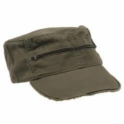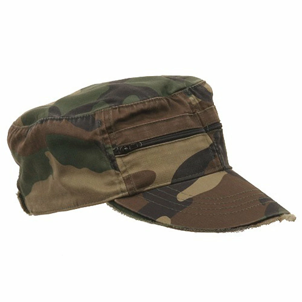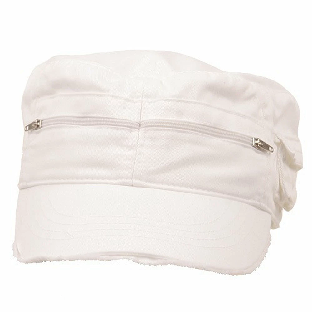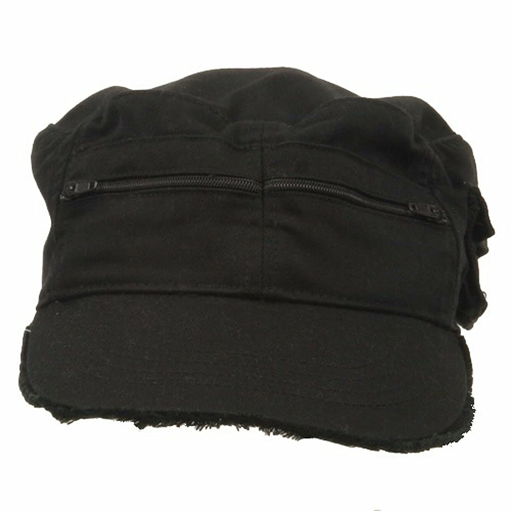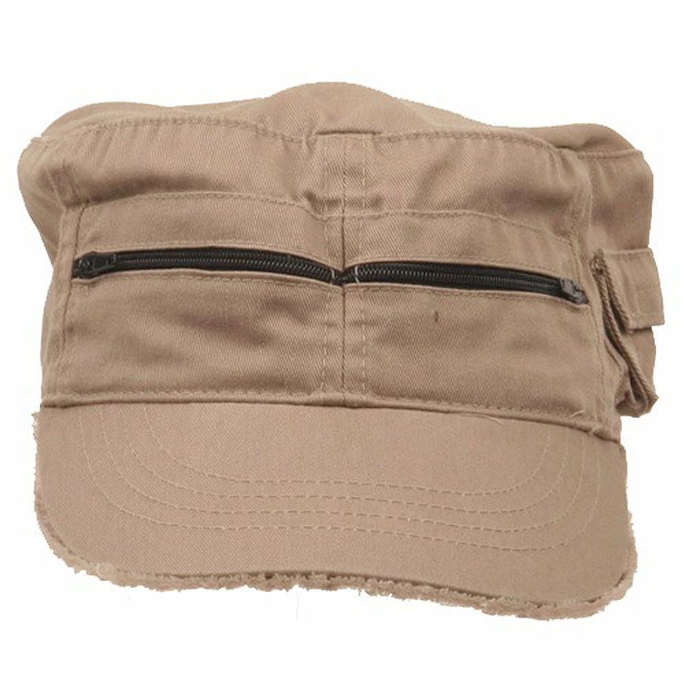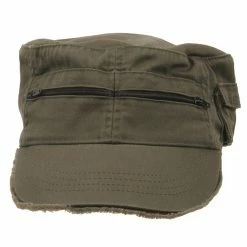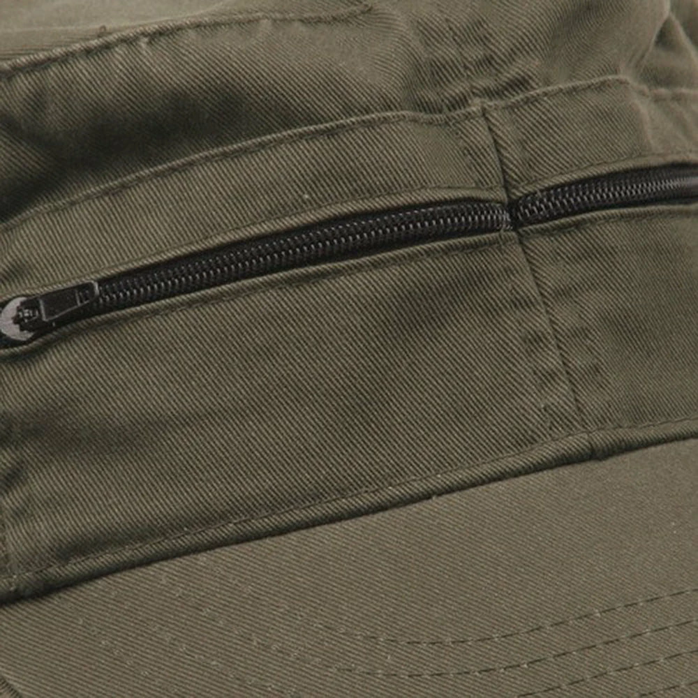 Zippered Enzyme Cotton Army Cap