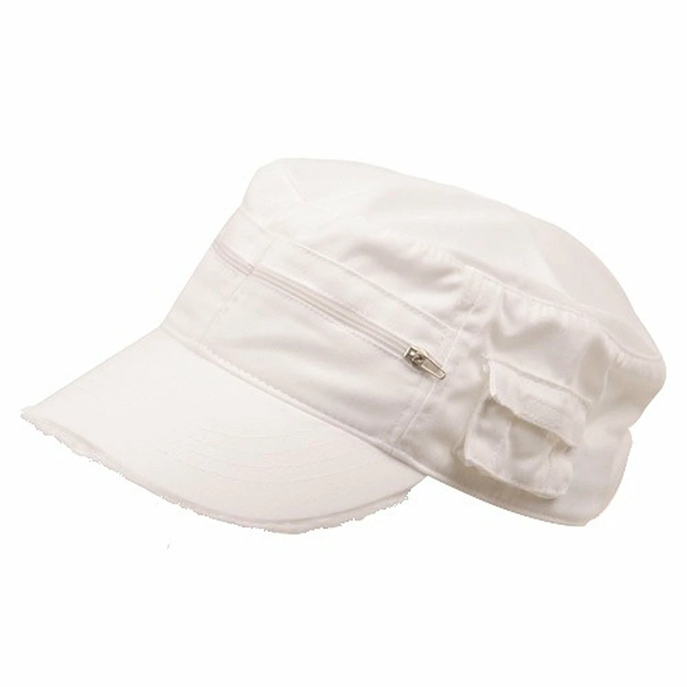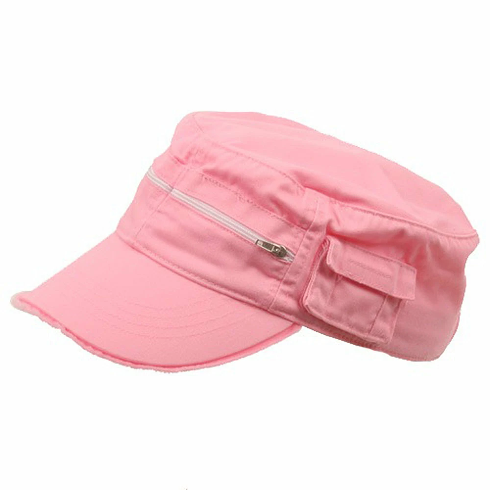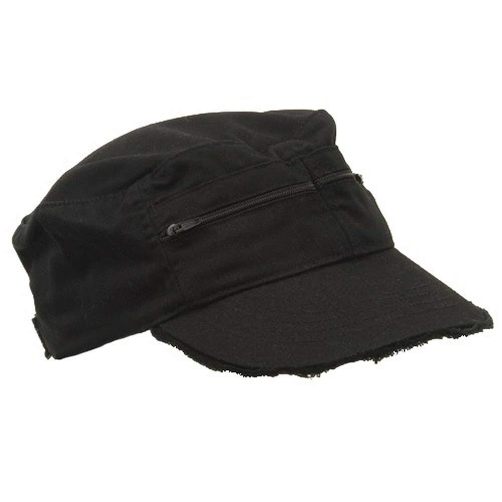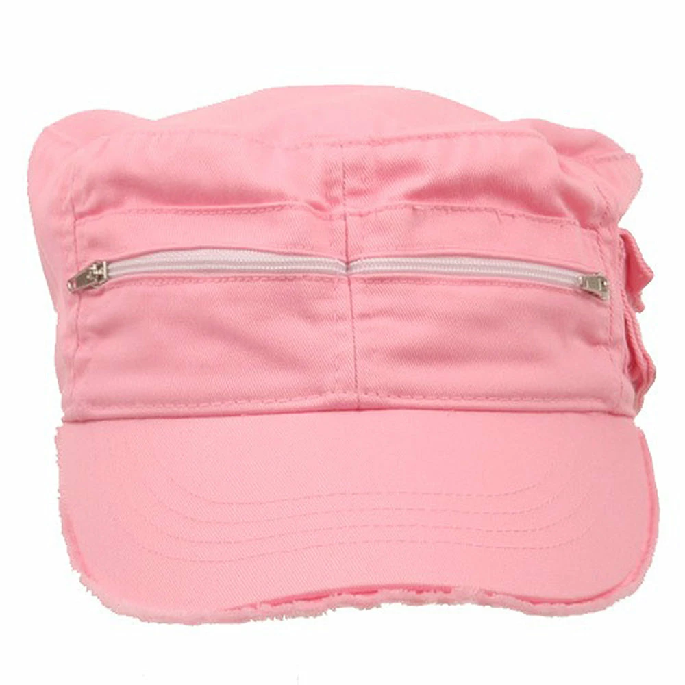 For the hip and trendy our frayed Zippered Enzyme Army Cap is the one for you! Made from 100% cotton, this cap features a 3-1/2inches deep crown with two zippered pockets at the two front panels and one side pocket to your left.Also features a 2-3/4 inches long bill with frayed edging for an added urban feel. To complete the back of the hat, an adjustable strap closure which makes this cap a comfy and easy fit for almost anyone. Try one in any of our exciting colors today!