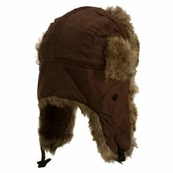 OurNew Suede ML Winter Trooper Hat is sure to make you look stylish while keeping your head warm all the time during winter.Made from 100% polyester, material of hat is soft, thick and warm with fully lined inside.Crown of hat measures 4 inches deep and bill of hat that measures 4 inches high is attached on front crown revealing inner fur material.Also, this winter trooper hat is featured with 7 inches long ear flaps on both sides that are accented with straps.These ear flaps are faux fur lined, ensuring warmth for your ears as well. This hat is hand wash only.Do not forget to try this hat in other colors as well.