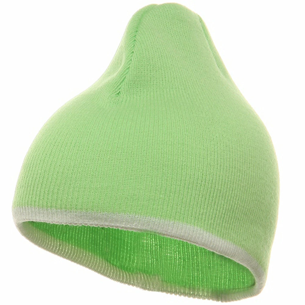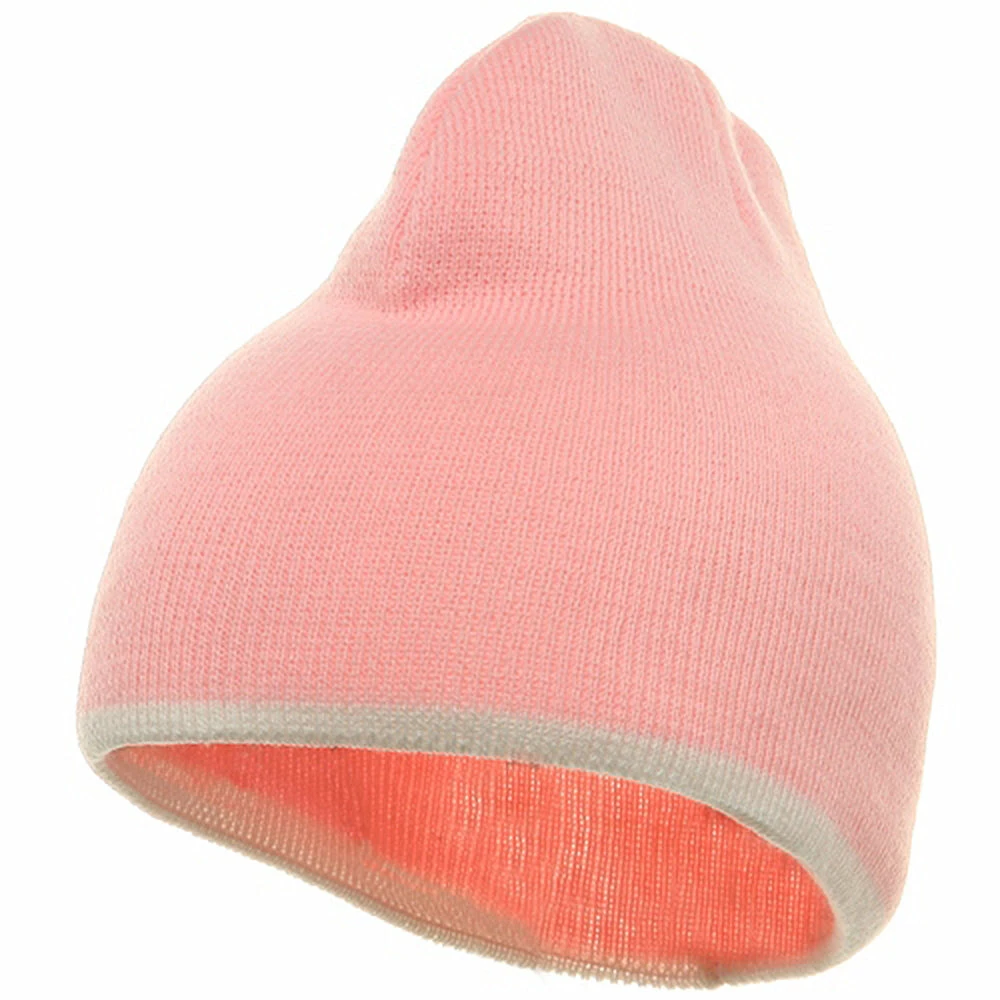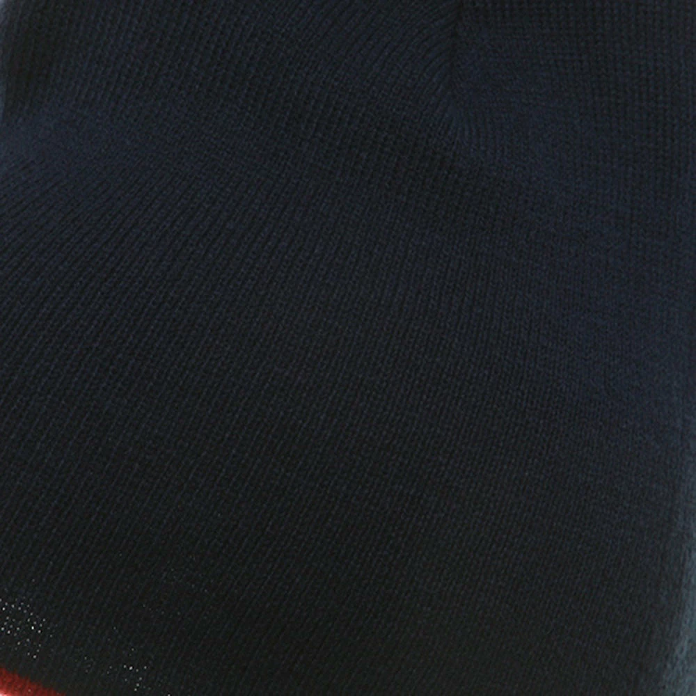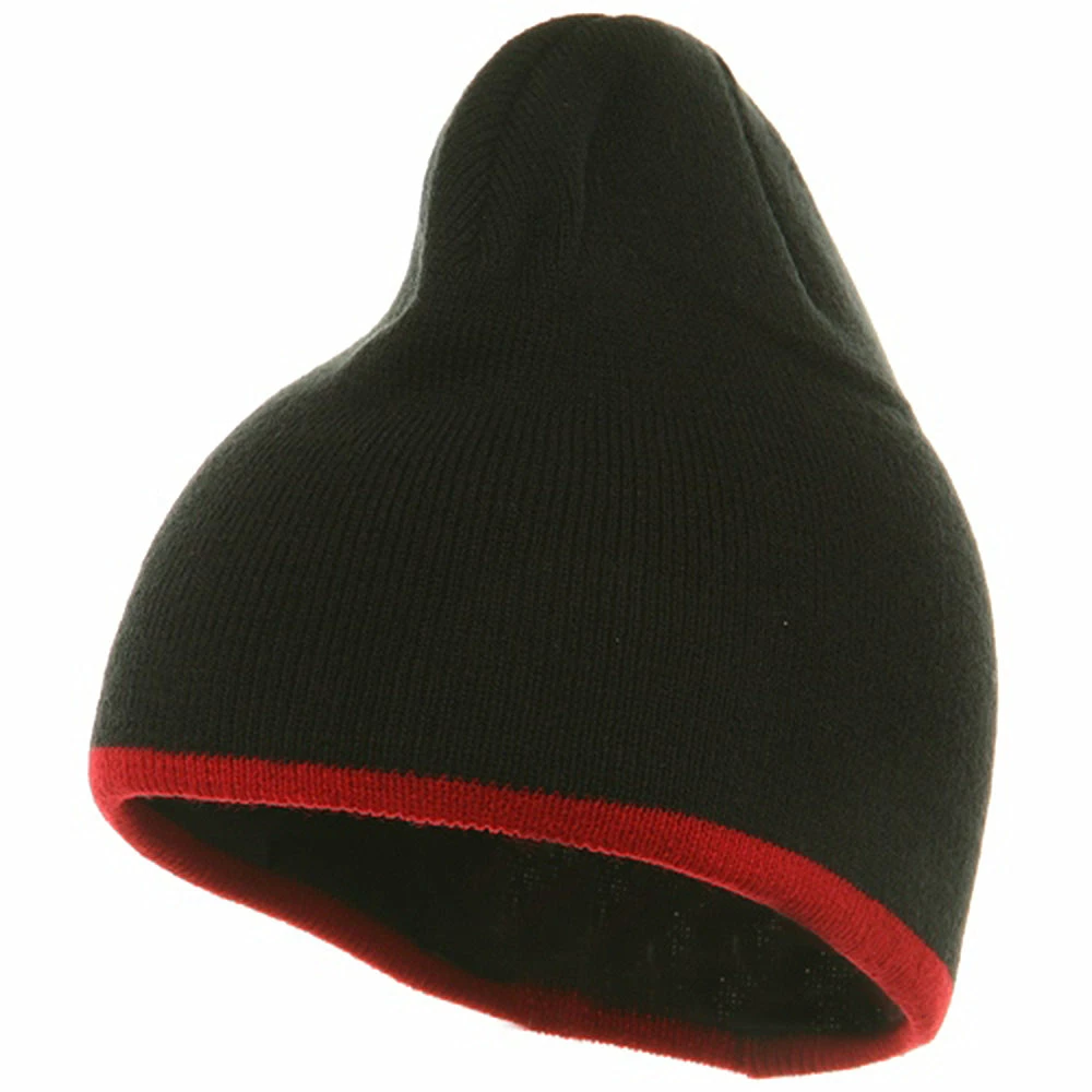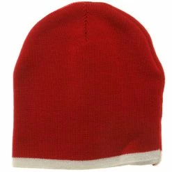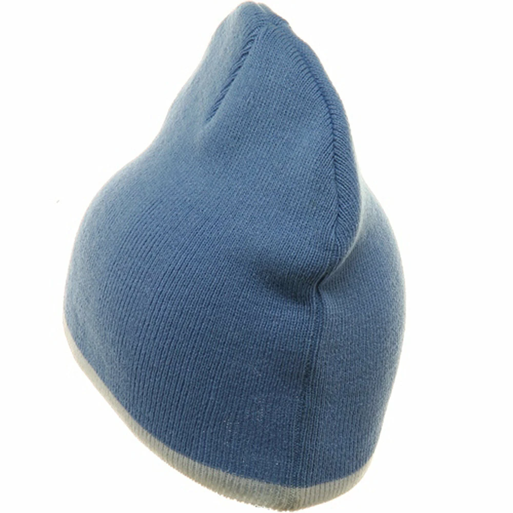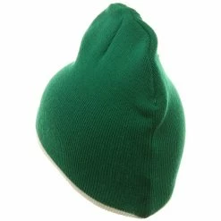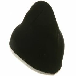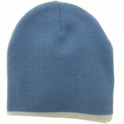 Double layered for extra warmth, this durable, basic solid beanie with contrasting trim detail will comfortably see you through the winter months in your favorite color combination. Constructed out of 1 panel of knit acrylic, in a fine tight weave to keep the weather out and to keep your warmth in, this hat offers a lot of stretch and flexibility, for a great fit on any head. The crown has 1 seam running down the back, for a clean round shape, and the hat is double layered for added insulation. The beanie is rich navy blue in color with white trim at the opening for contrast. Offered in many colors, you’re sure to find the color combo that corresponds to your favorite school or team colors.