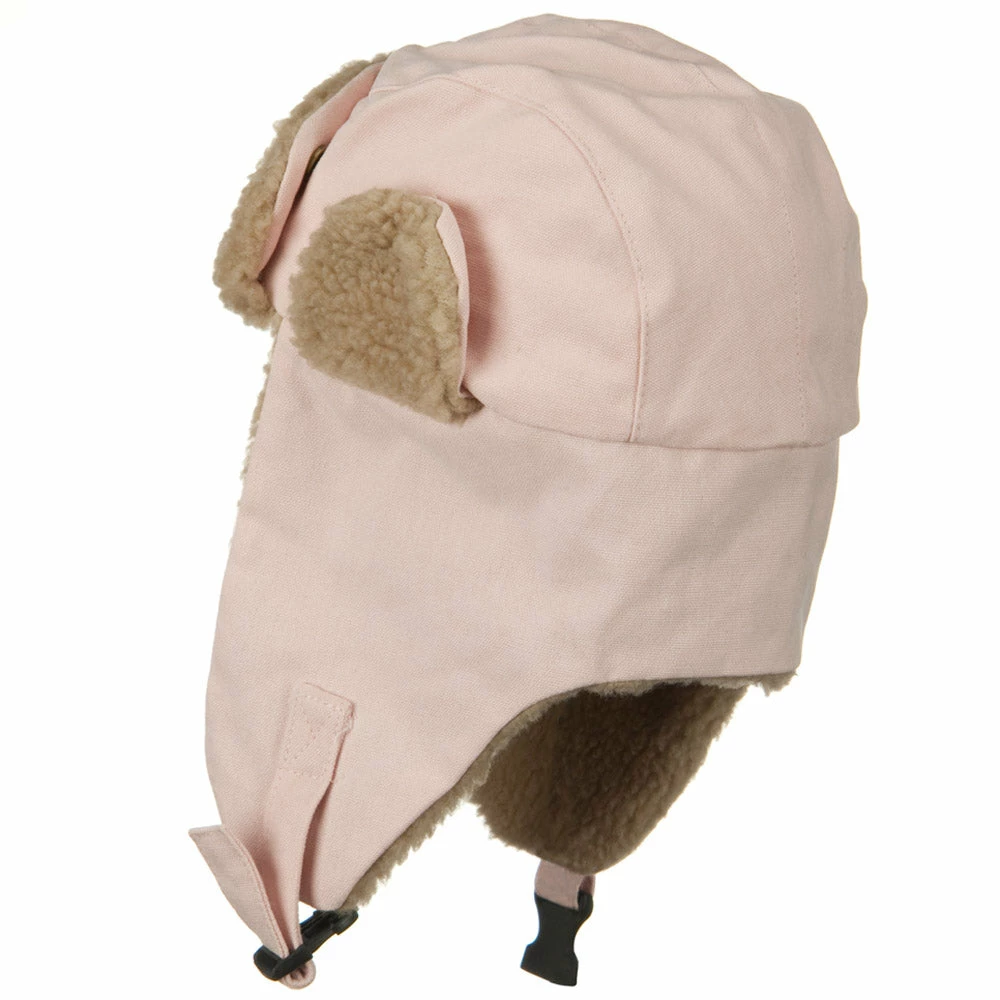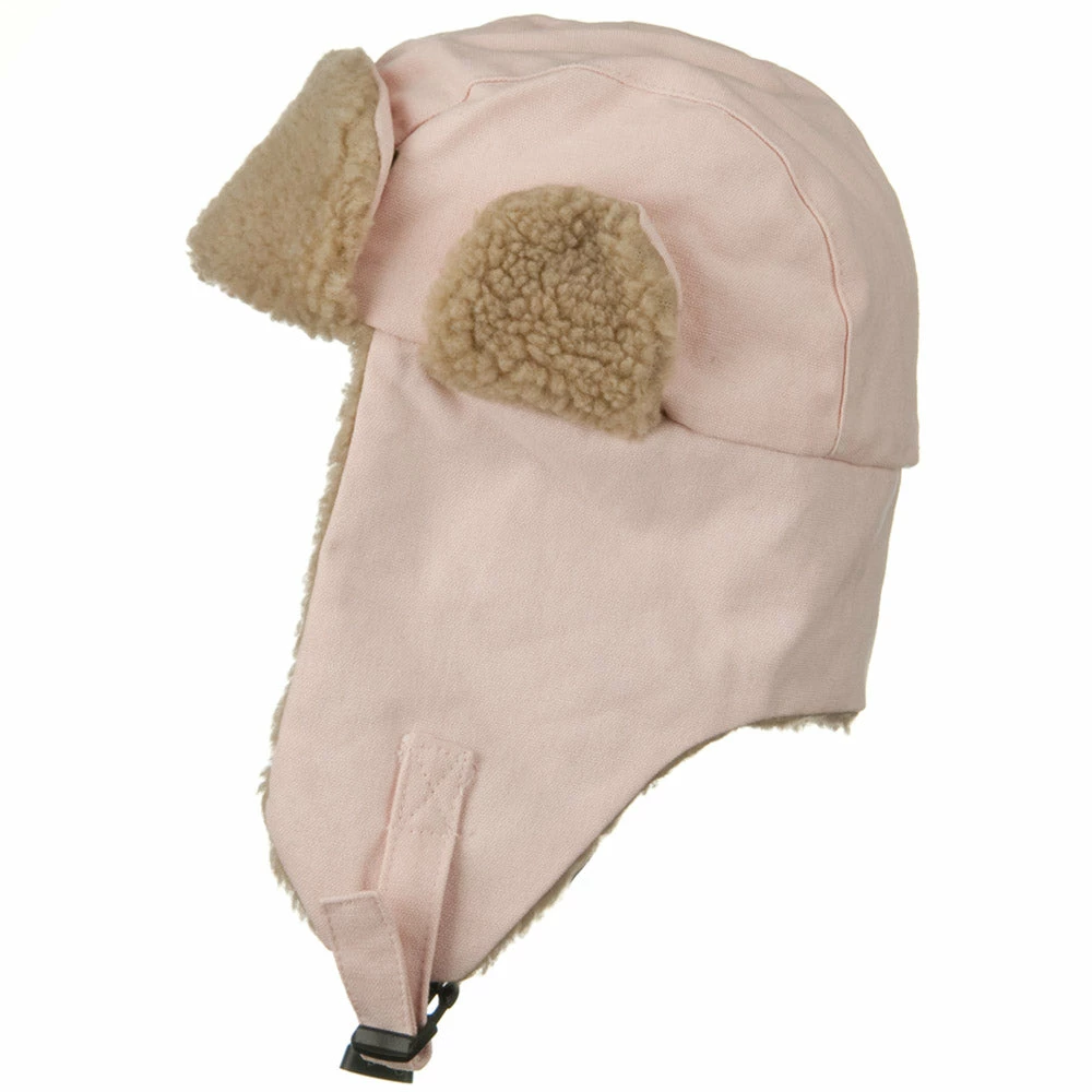 Earflaps measure 8 inches long with buckle chin string, faux fur lined.