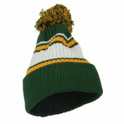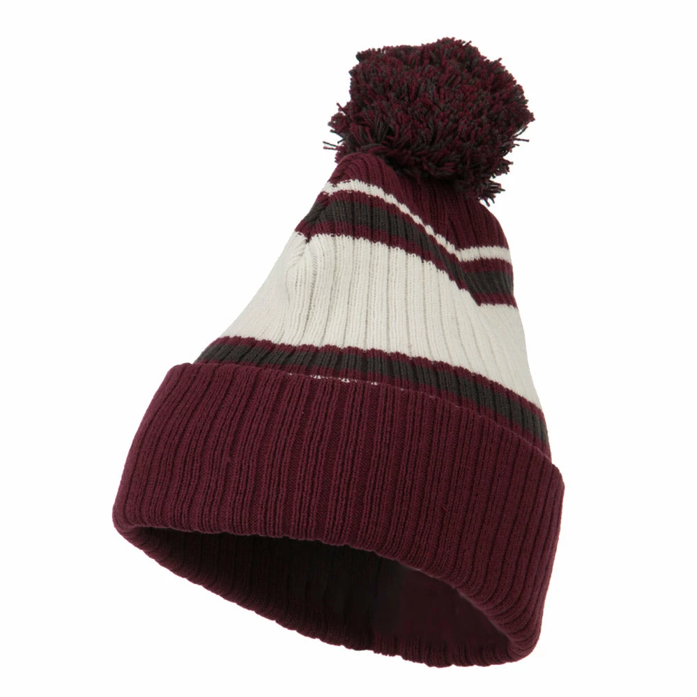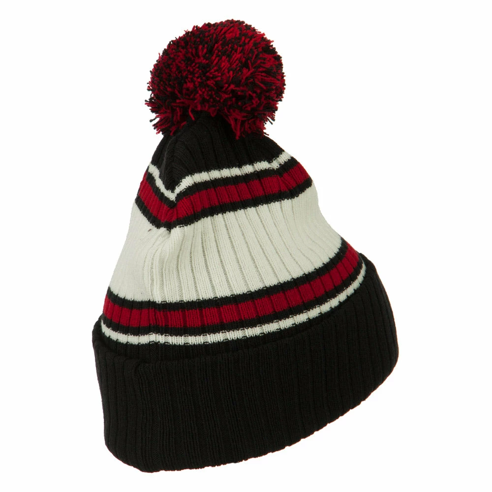 Cotton acrylic cuff watch cap beanie with stripes.