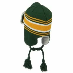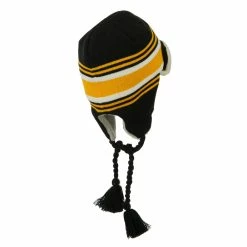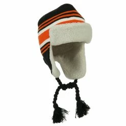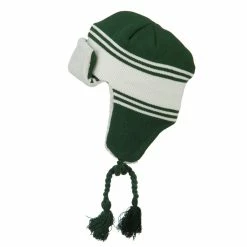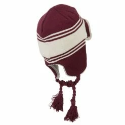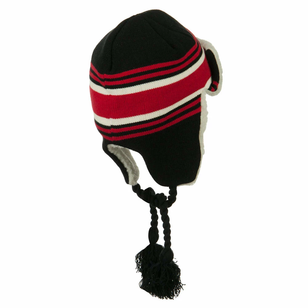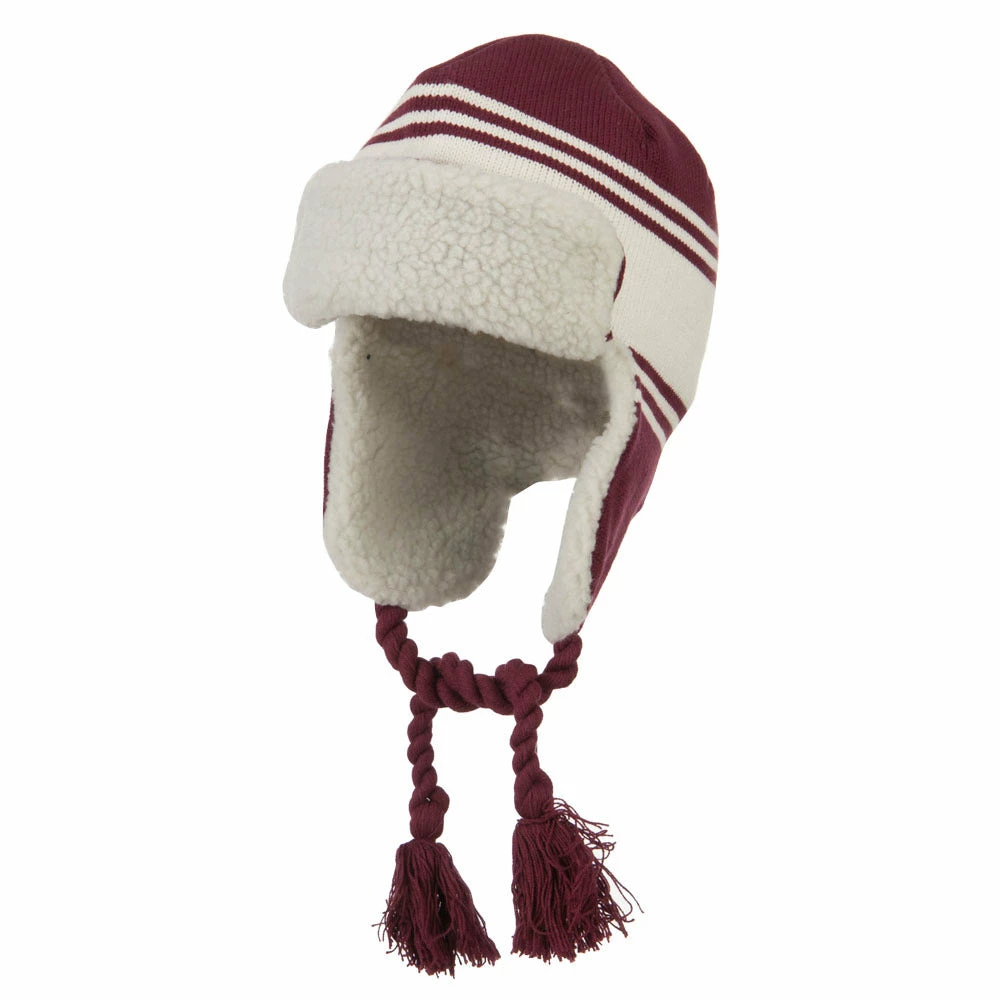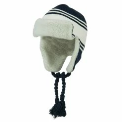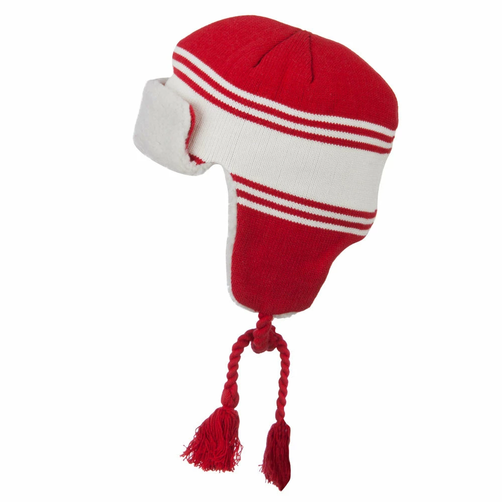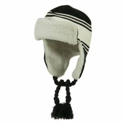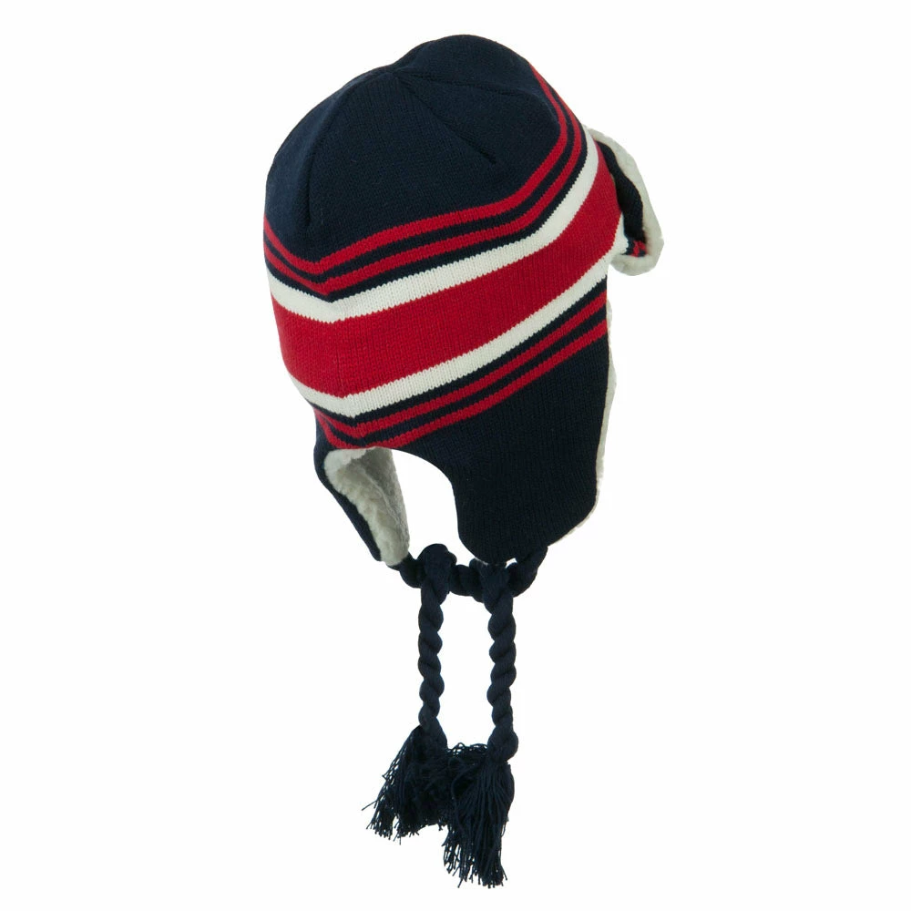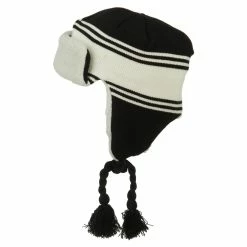 Acrylic knit aviator style trooper hat with accented stripes.