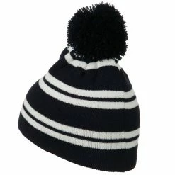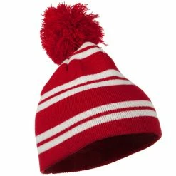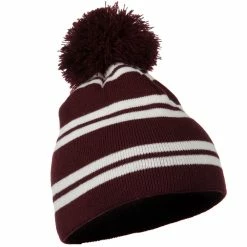 Our Jacquard White Stripe Knit Beanie with Pom is short beanie that is great for all of your winter outings. Made from two layered acrylic material, this beanie ensures warmth for your head while keeping stylish look. Solid in color, beanie features white stripes around the hat with a pom decoration on the top for added style. This winter beanie is ideal headwear for your next snow trips.