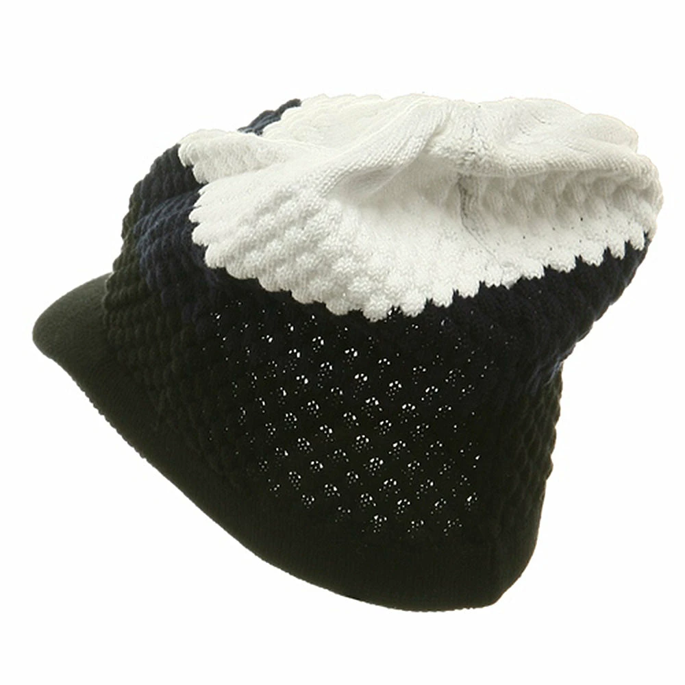 You’d make even Bob Marley jealous with one of our cool new tricolor beanie visors. With its breathable diamond stitch and three thick stripes of green, yellow and red, this hat is sure to be a hit no matter what crowd you travel in. While sporting a 2 1/4″ bill and stretchable elastic band in the back, this cap is big enough for the brother or sister, with or without dreads. Squash it, fold it or toss it, no matter what, it always comes out looking “cool”.