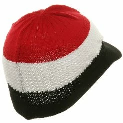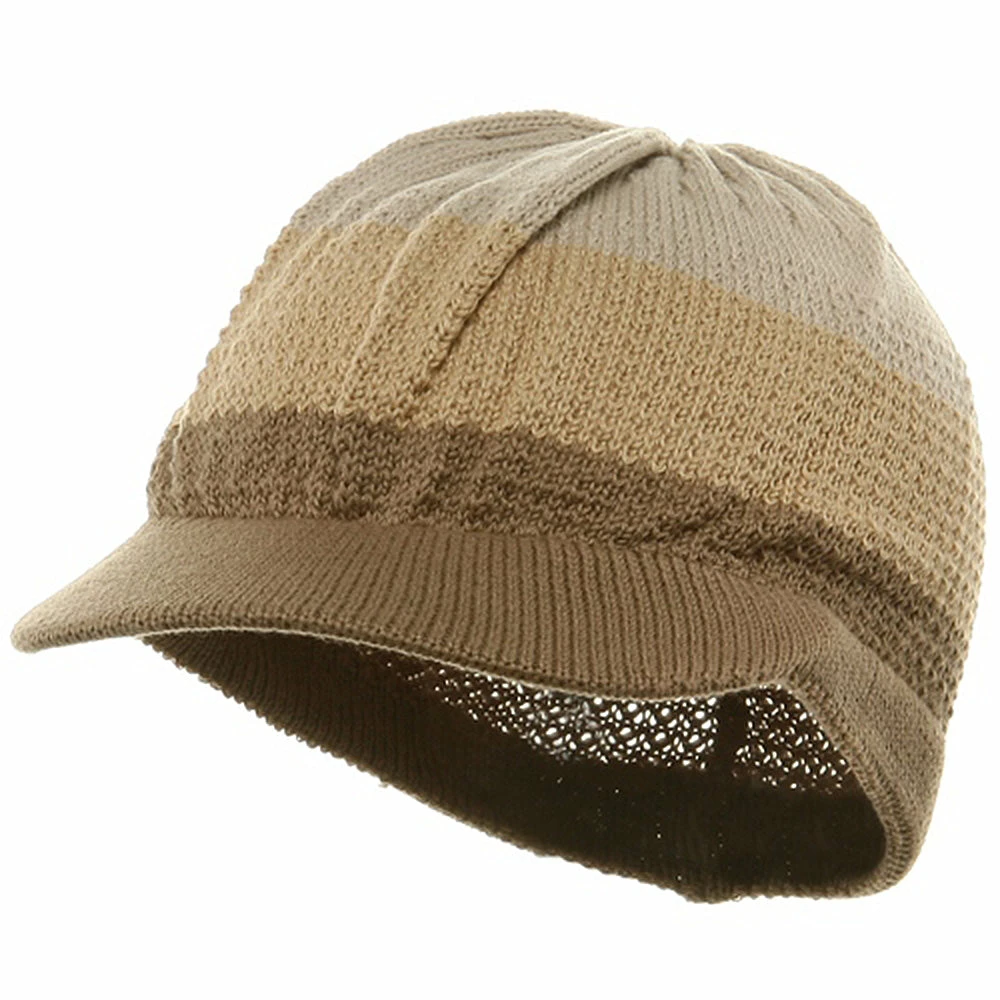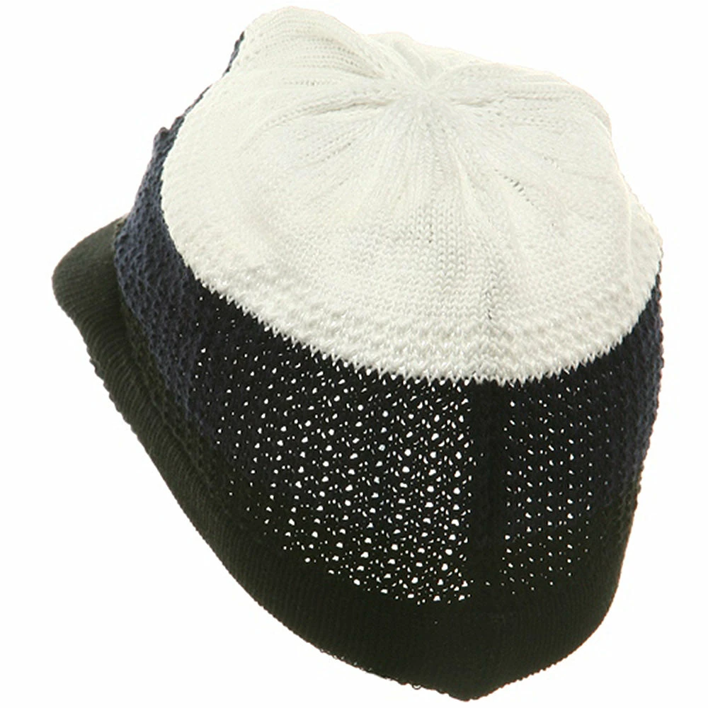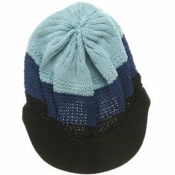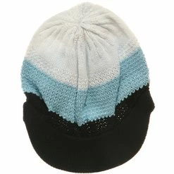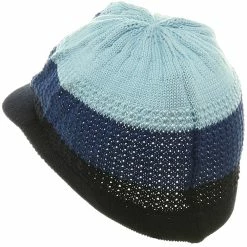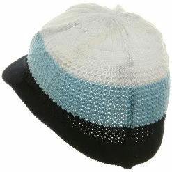 Comfort your head with this colorful three tone all cotton running beanie with visor for protection and cool ventilation. Constructed out of 1 panel of beautifully textured striped cotton knit of white, sky blue, and navy, the top is gathered for a roomy domed crown. The airy weave allows for breezy ventilation while maintaining your body temperature with coverage, shielding you from the sun with its fabric covered 2-1/4″ bill. This lightweight hat is stretchy and flexible for easy wear and has an elastic hatband to ensure a secure, comfortable fit for every head shape. Cover your head, not your personal style with this cool and casual, urbanized visored beanie that is available in 19 different color schemes.