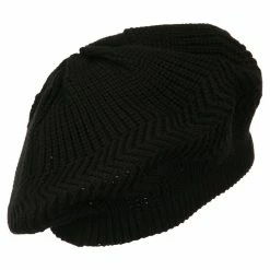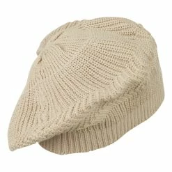 Beret features a flexible ribbed brim.