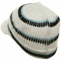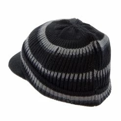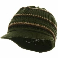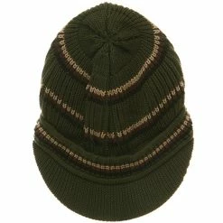 Dress your head in this thick, snazzy striped beanie with visor to protect you from the elements in relaxed style. The hat is constructed out of 1 panel of chunky cotton rib knit, making this a stretchy, flexible hat with a lot of give. There is 1 gather at the top of the crown for a roomy dome shape with enough space for your locks. The elegant olive hat is decorated with contrasting stripes of khaki, brown and black woven into the textured knit. An elasticized cuff bands the opening to ensure a secure comfortable fit while the generous bill of 2-1/4″ protects you from sun or snow. The natural material will naturally keep you ventilated while retaining your body temperature. Lightweight and easy to wear, this hat will serve you well.