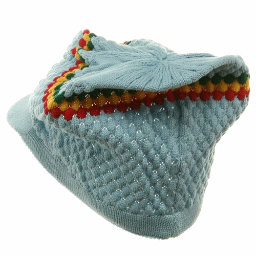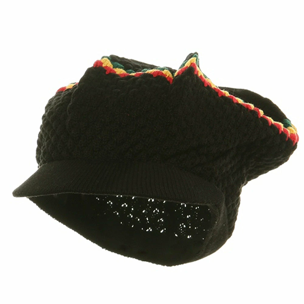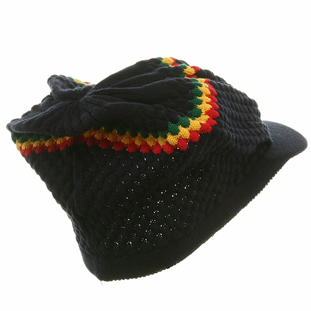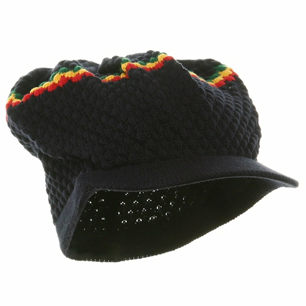Treat yourself to our new Rasta beanie visor and make your head “happy man”. This beautifulbeanie with a 2 1/4″ formed visor, features a unique thick diamond stitch, perfect for those cold nights out and an elastic band to ensure a snug fit. As if that wasn’t enough, this hat also features a Jamaican flare with a band of red, yellow and green circling the beanie’s top. So show your reggae pride and wear one today in any of the many available colors.