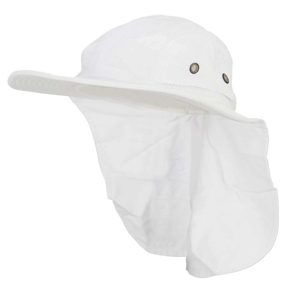 Protect yourself from the sun with our Mesh Sun Protection Flap Hat. This lightweight hat will offer great protection and keep you cool when you’re outdoors with its great features. The brim is wide enough to keep the sun out of your eyes, while the flap on the back will keep your neck protected as well. The inside of the hat is lined with mesh and has vent holes on either side of the hat to keep your head well ventilated in any condition. There is a built in sweat band to keep you dry and comfortable throughout any activity and there is an elastic back with drawstring to adjust tightness and fit of the hat. This hat is a must for anybody who loves the outdoors and will shield you from the sun while you enjoy.